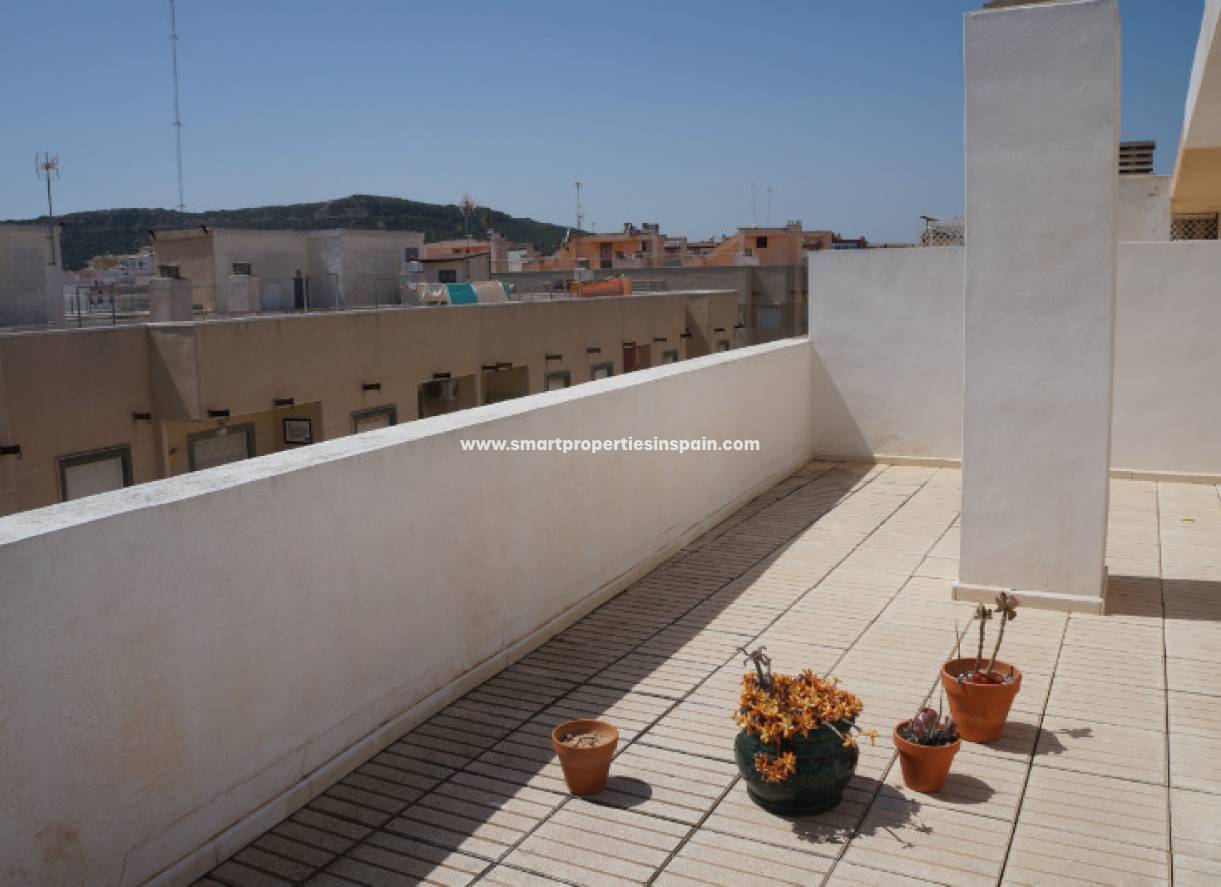 Dieses schöne Penthouse-Wohnung in sehr gutem Zustand in Guardamar entfernt und neu auf dem Markt. Es besteht aus einem schönen Wohnzimmer, separate Küche, 2 Schlafzimmer mit Einbauschränken und ein Badezimmer. Immobilie ist komplett möbliert, Internet bereitgestellt und ist nach Osten und Süden. Draußen bietet eine private Terrasse, ein Solarium, die Aussicht auf die Berge bietet. In der Nähe der Bushaltestellen, 5 Minuten Fußweg zum Strand und allen Annehmlichkeiten.