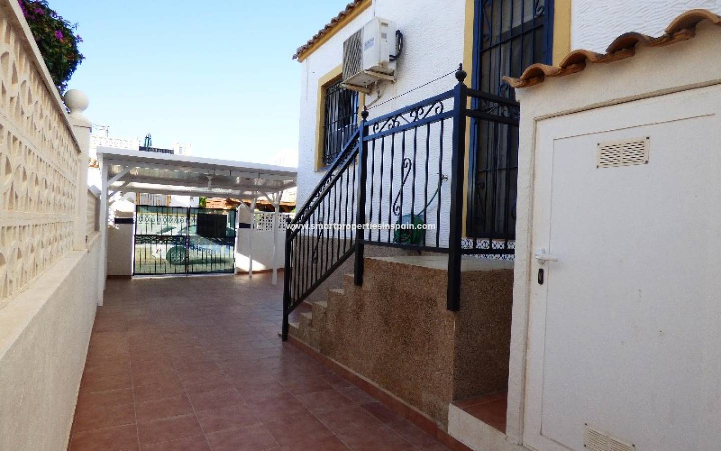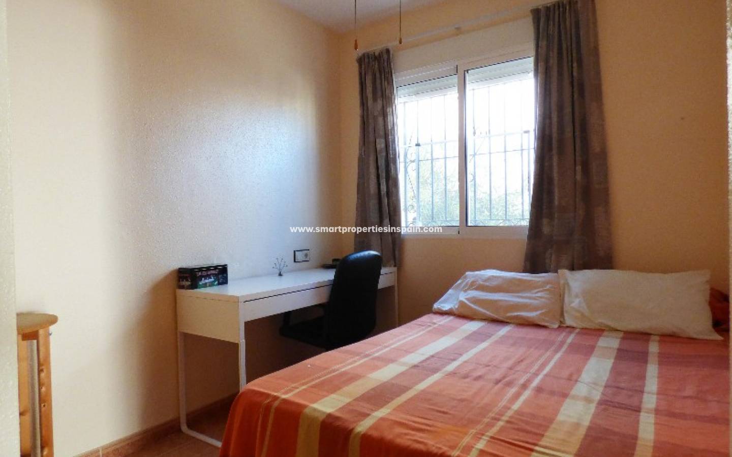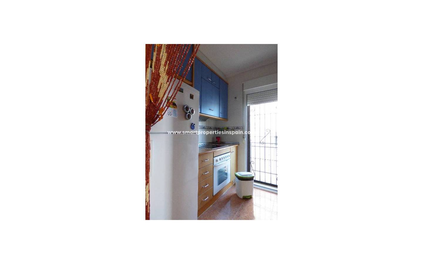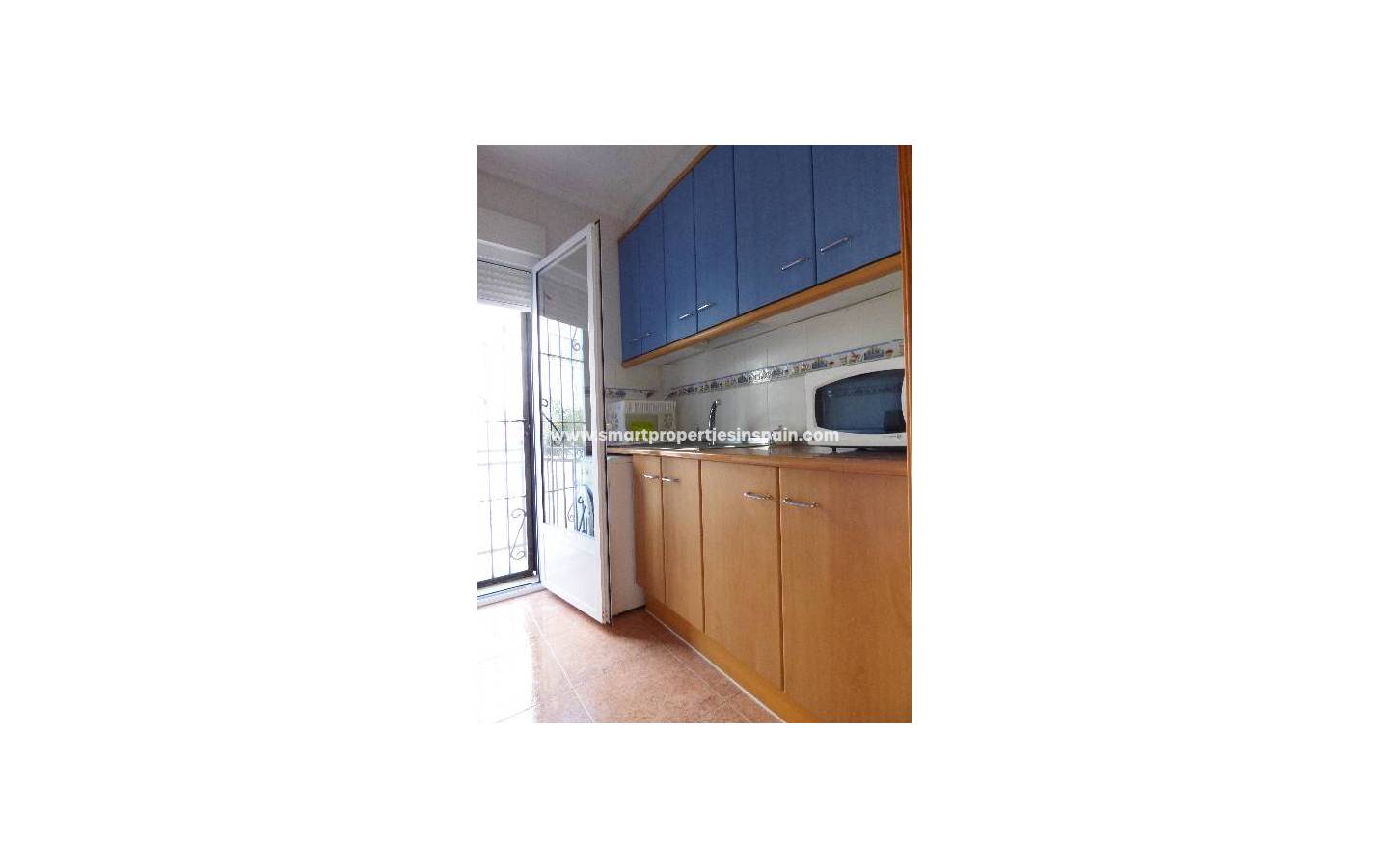 Hier stellen wir Ihnen dieses Quattro-Haus in La Marina vor. Diese Objekt besteht aus 3 Schlafzimmer mit Einbauschränken, 2 Bäder, Wohnzimmer, separate Küche und ein Solarium alles auf zwei Etagen verteilt. Doppelverglasung und Sicherheitsgitter an allen Fenstern. Draußen finden Sie einen gefliesten Garten mit Parkplatz und einen Gemeinschaftspool in Gehweite. Es wird teilmöbliert verkauft und ist ebenfalls klimatisiert. Die Gegend bietet einen guten Zugang zu allen Annehmlichkeiten.