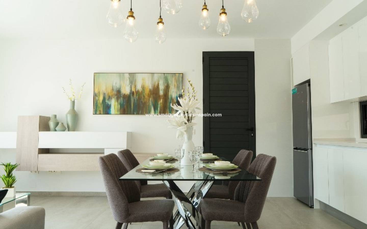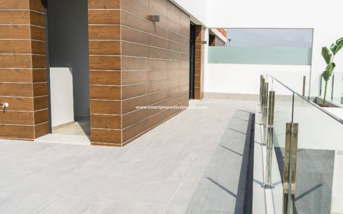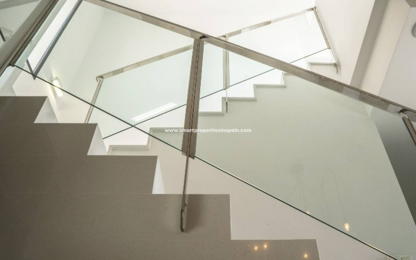 Modernes Design mit modernen Linien, ohne die mediterrane Wärme zu verlassen. Geräumige Zimmer, in denen sich die Helligkeit und die hochwertige Ausstattung auszeichnen. Haus auf zwei Etagen: Erdgeschoss mit 2 Schlafzimmern, 2 Bädern, Wohnzimmer, Küche und Abstellraum; Erster Stock mit 1 Schlafzimmer, Bad und Solarium von 47 m2. Alle Villen verfügen über einen herrlichen mediterranen Garten, einen privaten Pool von 5 x 3, unabhängige Parkplätze auf dem gleichen Grundstück. Das Wohngebiet liegt in der Nähe des Stadtkerns von Benijófar, neben der Urbanisation Ciudad Quesada, im Herzen der Vega Baja Region. Nur fünf Minuten zu Fuß von der Service-Bereich, Supermärkte, Geschäfte, Sportplätze und in der Umgebung des städtischen Parks "Cañada Marsá", die ein paar Meter von der Wohngegend befindet. Eine Villa auf einem privaten Grundstück von 238 m2 mit Pool, mit der Möglichkeit, einen Ort zu genießen, der Ihnen erlaubt, sich auszuruhen, in einer privaten Umgebung zu sonnen, aber mit der Welt verbunden ist. Ein freundlicher und ruhiger Ort zum Leben, in einer Gemeinde, nur 10 Minuten von den langen Sandstränden von Guardamar del Segura entfernt. 5 Minuten von renommierten Golfplätzen, wie "La Marquesa Golf" und "La Finca Golf". Nur 25 Minuten vom internationalen Flughafen Alicante-Elche entfernt.