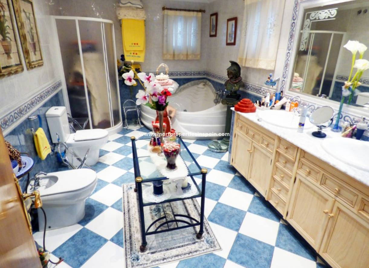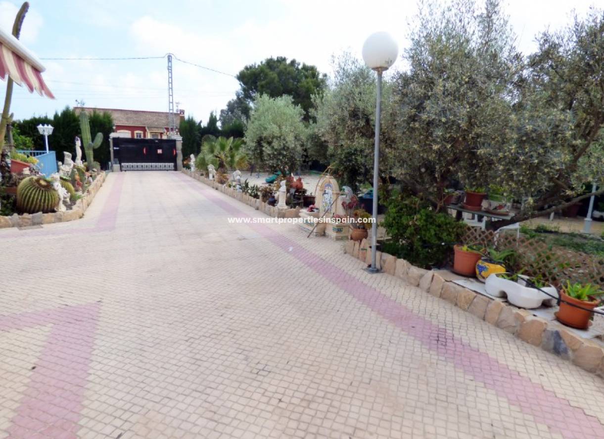 In Elche haben wir diese wunderschöne Finca auf einem 2400 m2 großen Grundstück. Beim Betreten der Auffahrt begegnen Sie dem großen privaten Swimmingpool, einer großen Bar, einer Außentoilette und einem Abstellraum sowie einem Carport mit Platz für 4 Fahrzeuge. Sobald Sie das Haupthaus durch die verglaste Veranda betreten, finden Sie ein Wohnzimmer mit Kamin, 2 separate Küchen, ein Esszimmer mit Zugang zu einem Büro mit eigenem Bad. Es gibt 3 weitere Doppelschlafzimmer, 1 mit eigenem Ankleidezimmer und eigenem Bad sowie ein weiteres Badezimmer. Auf der Rückseite des Hauses befinden sich ein große Lagerhalle und ein Grillplatz. Das Objekt liegt in einer ruhigen Gegend, aber nur 4 Minuten von der Stadt La Hoya und der Urbanisation La Marina und nur 10 Minuten vom Strand entfernt. Besichtigungen werden sehr empfohlen!