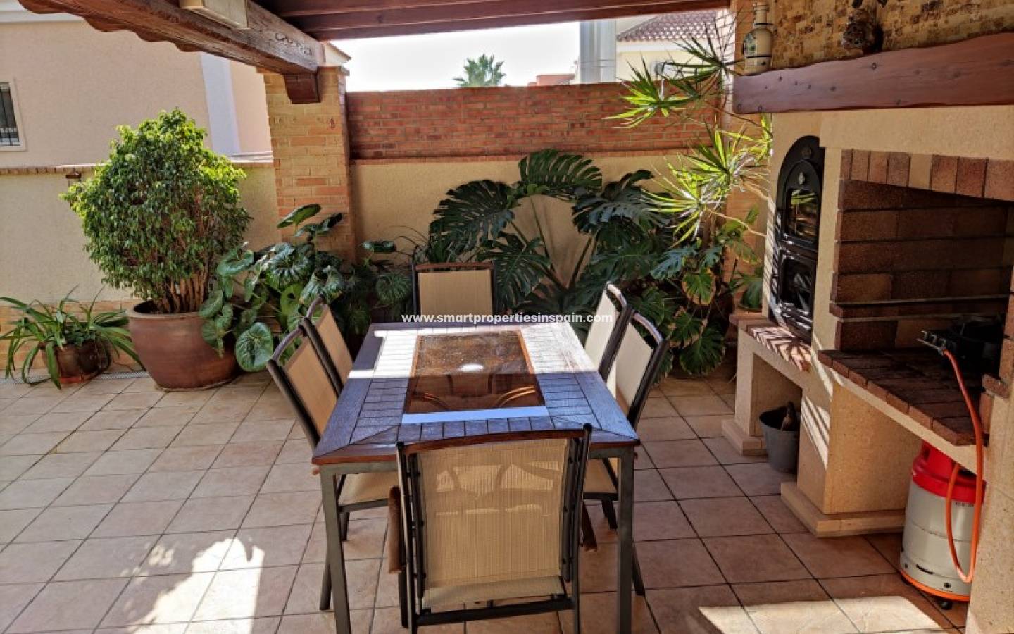 Der Garten bietet auch eine große Außenküche mit Grill und Sitzbereich, ideal zum Essen und Spaß draußen. Die Terrasse bietet einen erhöhten Blick auf den Garten und wieder eine angenehme Sitzecke. Beim Betreten der Unterkunft finden Sie ein großes Wohnzimmer mit Esszimmer und eine voll ausgestattete offene Küche. Das Hauptschlafzimmer hat auch ein eigenes Bad und es gibt zwei weitere Doppelschlafzimmer und ein Familienbadezimmer, alle auf einer Ebene, um das Leben zu erleichtern.