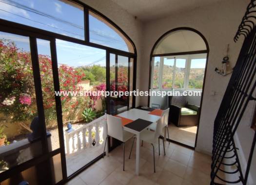 Die Eingangstreppe führt zu einem großen Wintergarten, der sich um die Seite windet und einen Blick auf die umliegende Landschaft bietet. Das Wohnzimmer ist geräumig und hell und die offene Küche ist komplett ausgestattet. Es hat auch zwei Doppelschlafzimmer und ein Familienbadezimmer. Die Villa ist komplett möbliert und bietet eine großartige Gelegenheit, eine Immobilie in einer ruhigen Gegend, aber auch in der Nähe von Dienstleistungen zu besitzen.