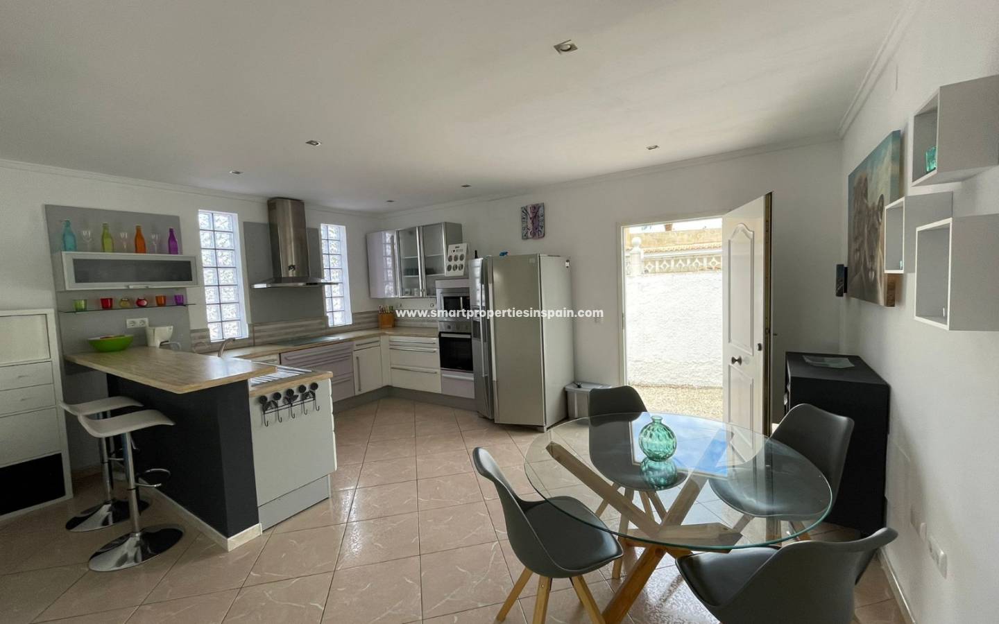 Die Aussicht setzt sich im Haus fort und sobald Sie eintreten, sehen Sie den Blick direkt auf den Pool, es gibt eine offene, moderne, helle Küche von sehr guter Größe, komplett ausgestattet mit einem Essbereich, der sich zu einem sehr geräumigen, helles Wohnzimmer mit Kamin, großem Fernseher, aber auch Kinoprojektor mit 3-m-Leinwand zum Ansehen von Filmen. Zwei Schiebetüren tauchen den Raum in Sonnenlicht, eine führt hinunter zum Pool, die andere Tür führt zur verglasten überdachten Terrasse, die groß genug zum Entspannen und Essen ist, aber auch ein ganz besonderer Ort ist, um die atemberaubenden Wintersonnenuntergänge zu beobachten , die 2 Schiebetüren führen Sie zu einem verglasten erhöhten Terrassenbereich und Treppen zum Garten, Pool und Partybereich.