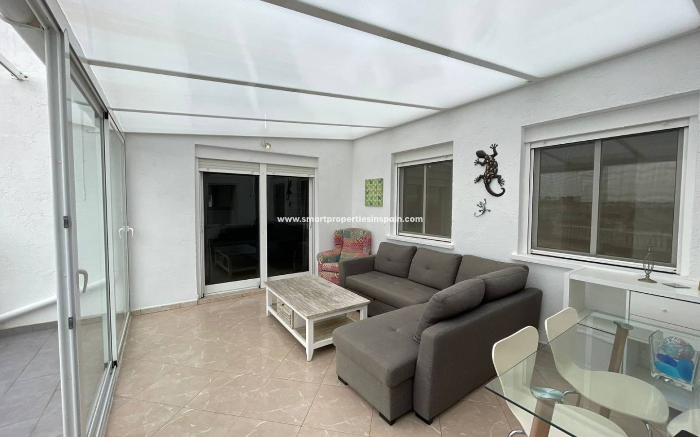 Ein breiter verglaster Flur führt Sie zum Familienbadezimmer mit einer schönen großen Badewanne und drei sehr großen Schlafzimmern, jedes mit Einbauschränken, eines der Schlafzimmer hat Schiebetüren zur überdachten Terrasse für Ihren Morgenkaffee und ein eigenes Bad Badezimmer mit großer ebenerdiger Dusche.