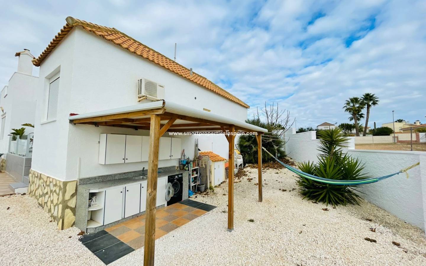 Der Garten ist riesig und pflegeleicht, Sie können auf dem Grundstück und auch vor dem Tor parken. Es gibt eine Außentreppe mit Unterschrank, Strom und eine Wasserversorgung führt Sie hinauf zum großen Solarium, von dem aus Sie einen atemberaubenden 360°-Weitblick haben, der die gesamte Urbanisation, die Berge und darüber hinaus bis zum Meer überblickt. Der perfekte Ort, um an Silvester das Feuerwerk aller in Nah und Fern zu sehen!