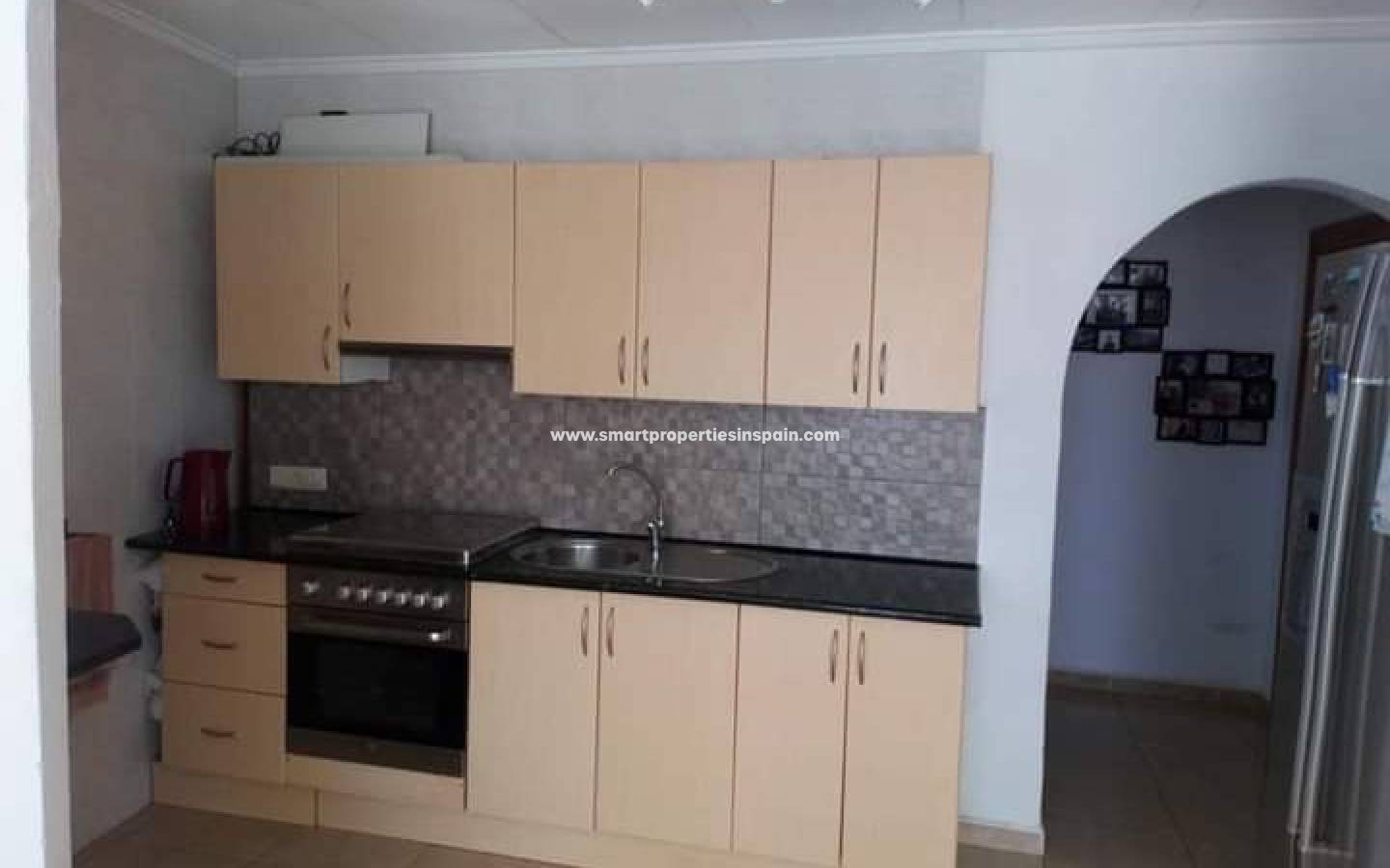 Das Gästehaus im Finca-Stil verfügt über einen völlig unabhängigen Eingang und einen eigenen Parkplatz, 3 geräumige Schlafzimmer, einen sehr hellen offenen Ess-/Wohn-/Küchenbereich und ein Badezimmer. Es gibt Schiebetüren zu einer sehr sonnigen Terrasse, wo Sie Ihr Frühstück und vieles mehr genießen können. Eine Außentreppe führt hinauf zu einem sehr großen Solarium, das ebenfalls eine wunderbare Aussicht bietet und auch der potenzielle Ort ist, um die beiden Grundstücke zu verbinden, wenn Sie dies wünschen.