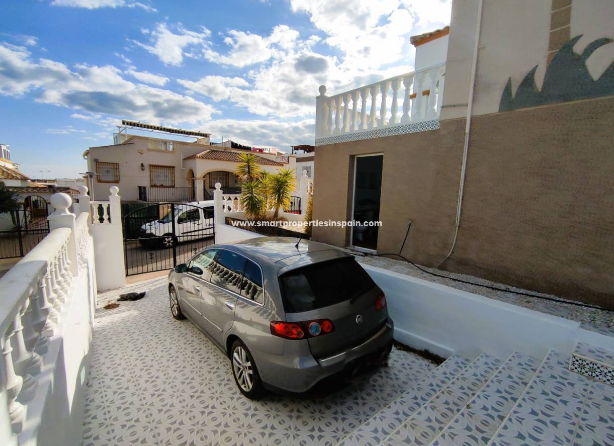 Beim Betreten des Hauses finden wir ein geräumiges und schönes Wohnzimmer mit Deckenventilator und Klimaanlage, drei geräumige und helle Doppelzimmer, zwei mit Einbauschränken, alle drei haben Deckenventilatoren und eines der Schlafzimmer hat eine Klimaanlage.
