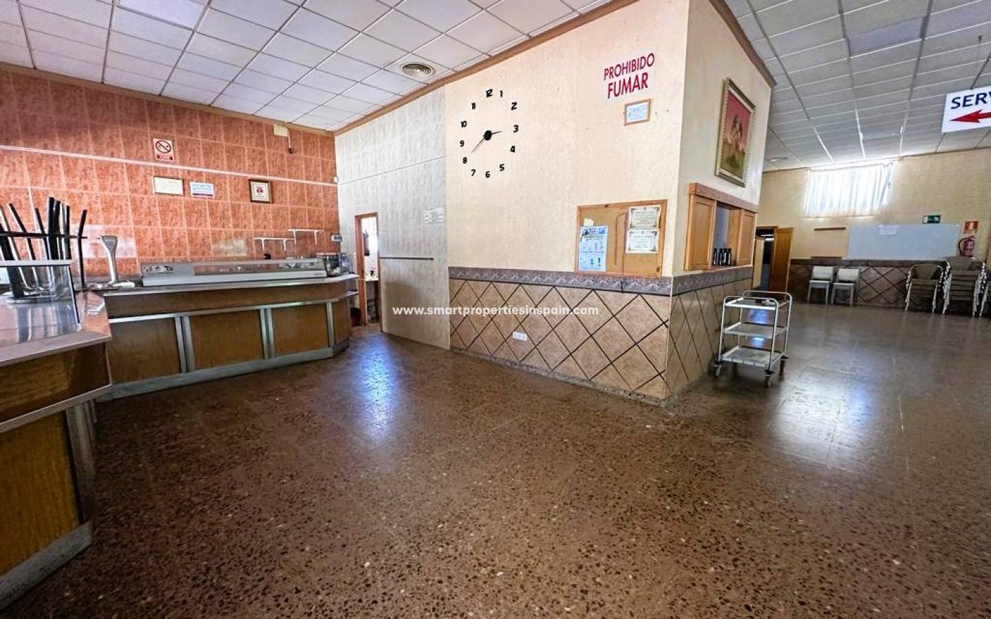 Funktionsraum : Der Gewerberaum verfügt über eine gut geplante Aufteilung, wodurch er sich ideal für verschiedene Aktivitäten eignet. Es verfügt über eine große Küche, die Möglichkeiten für ein Restaurant, eine Cafeteria oder ein Catering bietet. Es verfügt außerdem über einen außergewöhnlich großen Veranstaltungsraum, der für private Veranstaltungen, Konferenzen oder Gemeinschaftsaktivitäten angepasst werden kann. Toiletten und Lagerbereiche bieten bequemen und zusätzlichen Platz zum Aufbewahren von Waren oder Vorräten.