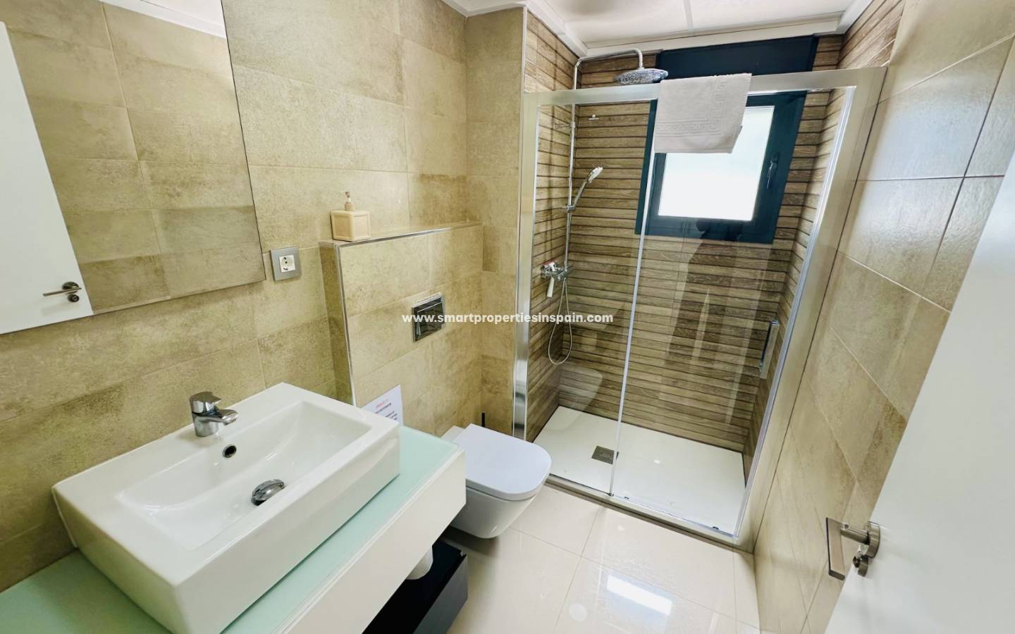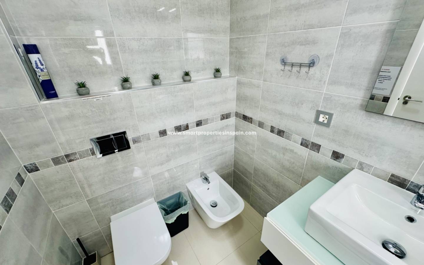 Erster Stock : 2 Doppelschlafzimmer , 1 komplettes Badezimmer und Zugang zu einer Sonnenterrasse mit Panoramablick , ideal zum Entspannen in der Sonne der Costa Blanca.