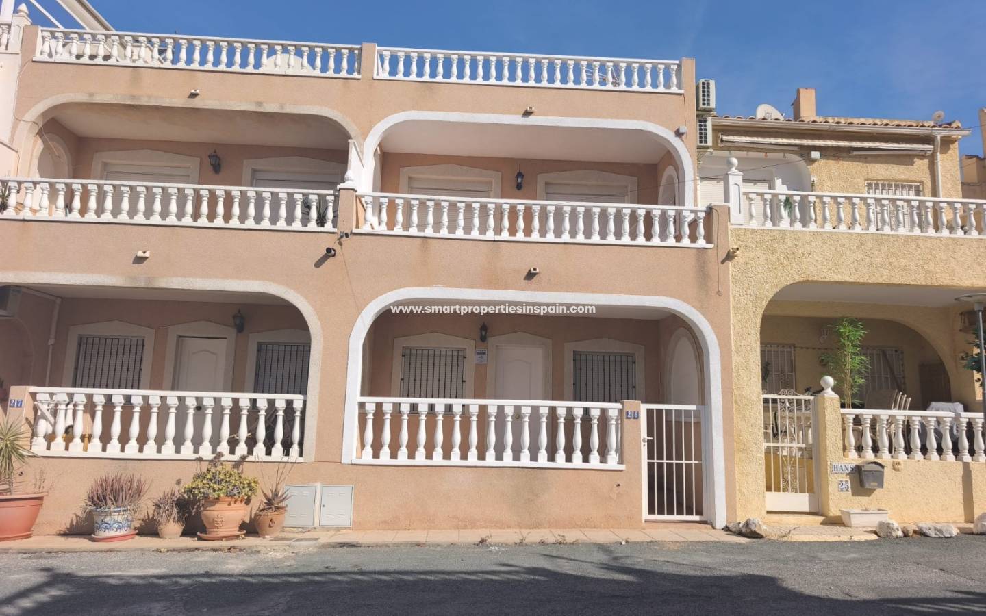 Im Erdgeschoss befinden sich ein helles Wohn-Esszimmer, eine voll ausgestattete Küche, ein komplettes Badezimmer und eine überdachte Terrasse, die Platz und Komfort bietet.