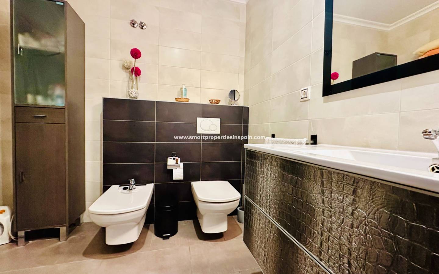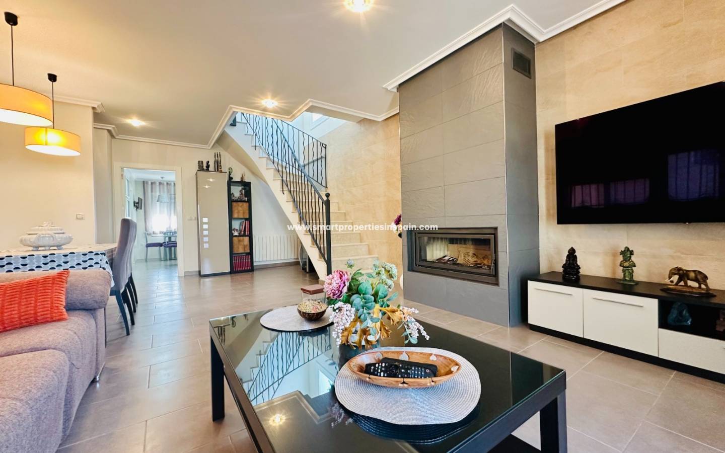 Das Haus wird möbliert und mit Haushaltsgeräten ausgestattet verkauft , mit hochwertigen Oberflächen wie Climalit-Tischlereiarbeiten, elektrischen Türen, Markisen und einem VDO-Zugangssystem.