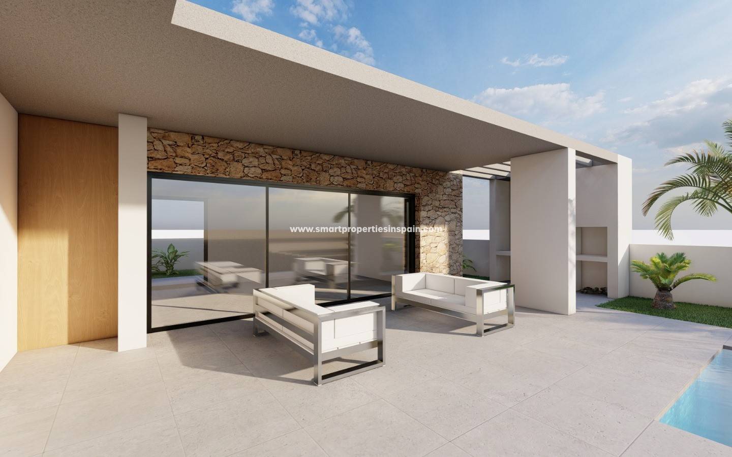 Das gesamte Haus befindet sich auf einer Ebene und bietet somit Komfort und Barrierefreiheit. Im Außenbereich befindet sich ein privater Swimmingpool, der sich ideal eignet, um das Wetter und die Umgebung in absoluter Privatsphäre zu genießen, sowie großzügige Außenbereiche mit vielfältigen Nutzungsmöglichkeiten.