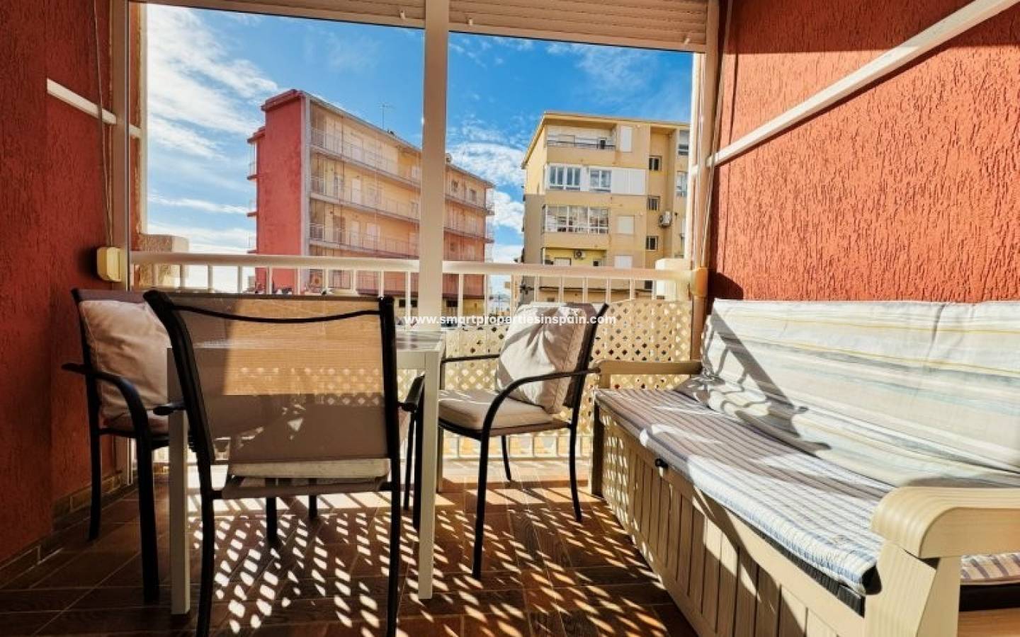 Es befindet sich in der Urbanisation Puerto Romano in La Mata. Mit einer Fläche von ca. 56 Quadratmetern umfasst es ein Wohn-/Esszimmer, eine offene Küche, zwei Schlafzimmer, ein Badezimmer, eine Terrasse und einen Innenhof.