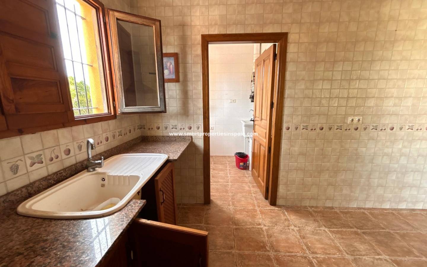 Diese wunderschöne, freistehende Villa mit einer Wohnfläche von 162 m² bietet eine außergewöhnliche Gelegenheit für alle, die Ruhe suchen, ohne auf Komfort zu verzichten. Gelegen auf einem großzügigen, komplett umzäunten Grundstück von ca. 2.000 m² , garantiert das Anwesen absolute Privatsphäre in einer begehrten Wohngegend von Catral. Das Haus besticht durch einen funktionalen und komfortablen Grundriss. Die Südausrichtung ist ein großer Vorteil, da sie den ganzen Tag über für optimale Sonneneinstrahlung und außergewöhnlich viel Tageslicht in allen wichtigen Bereichen sorgt.