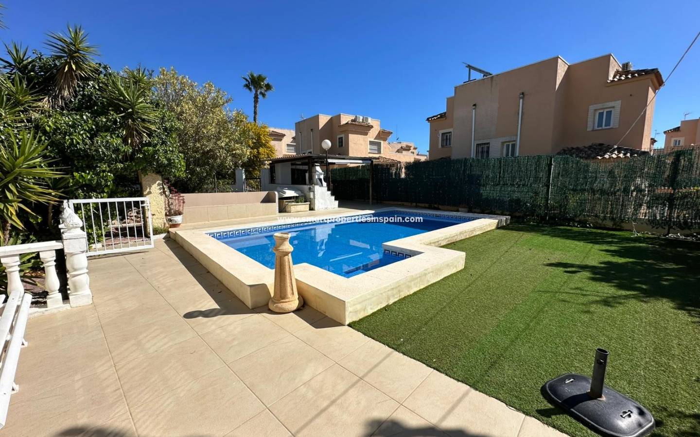 Die Hauptwohnung überzeugt mit einer durchdachten Raumaufteilung: Zwei komfortable Schlafzimmer, ein modernes Badezimmer, eine Küche sowie ein Esszimmer bieten ausreichend Platz für den Alltag. Das Highlight ist der großzügige Wohnbereich mit großen Fenstern, die einen herrlichen Blick in den Garten und auf den großen Pool ermöglichen und für viel natürliches Licht sorgen.