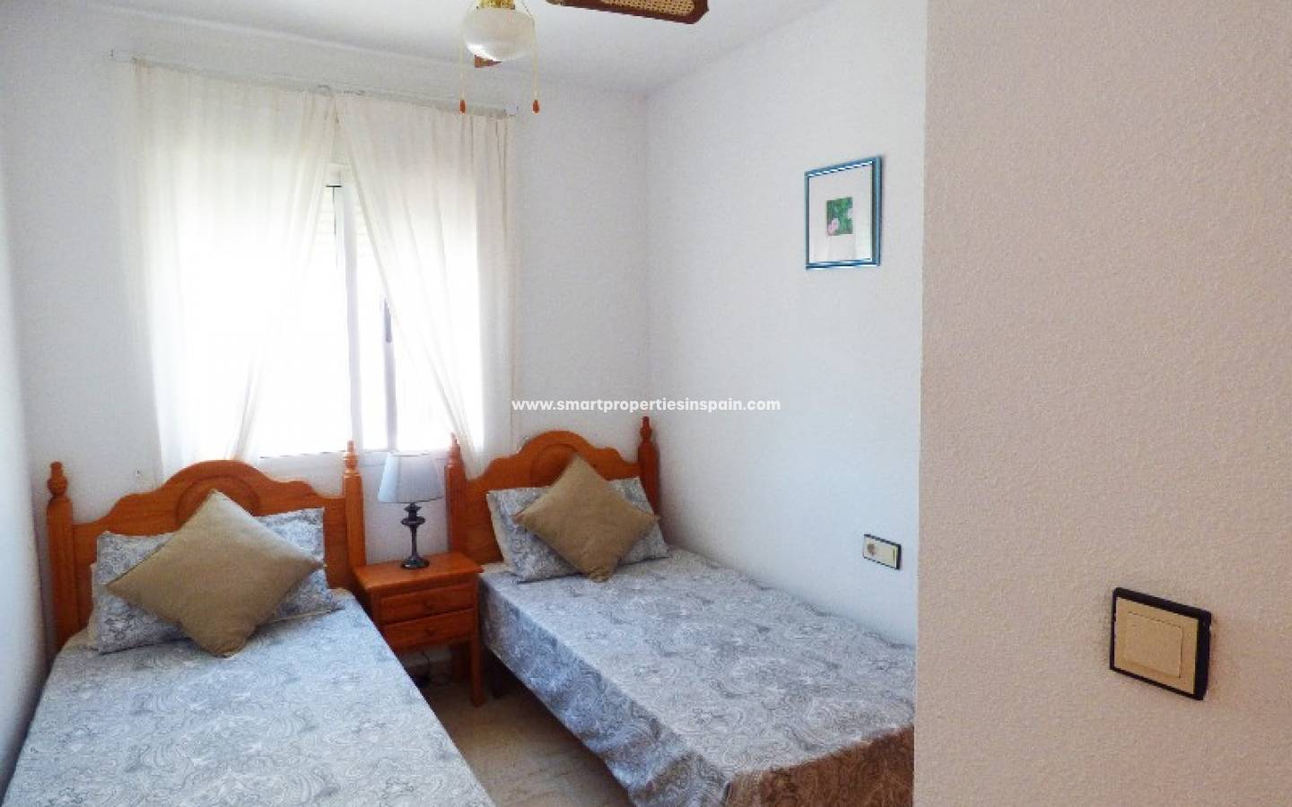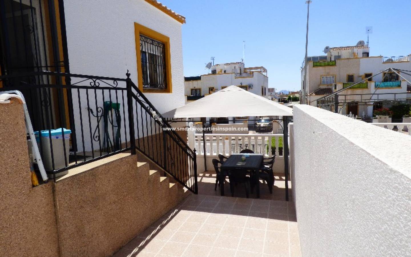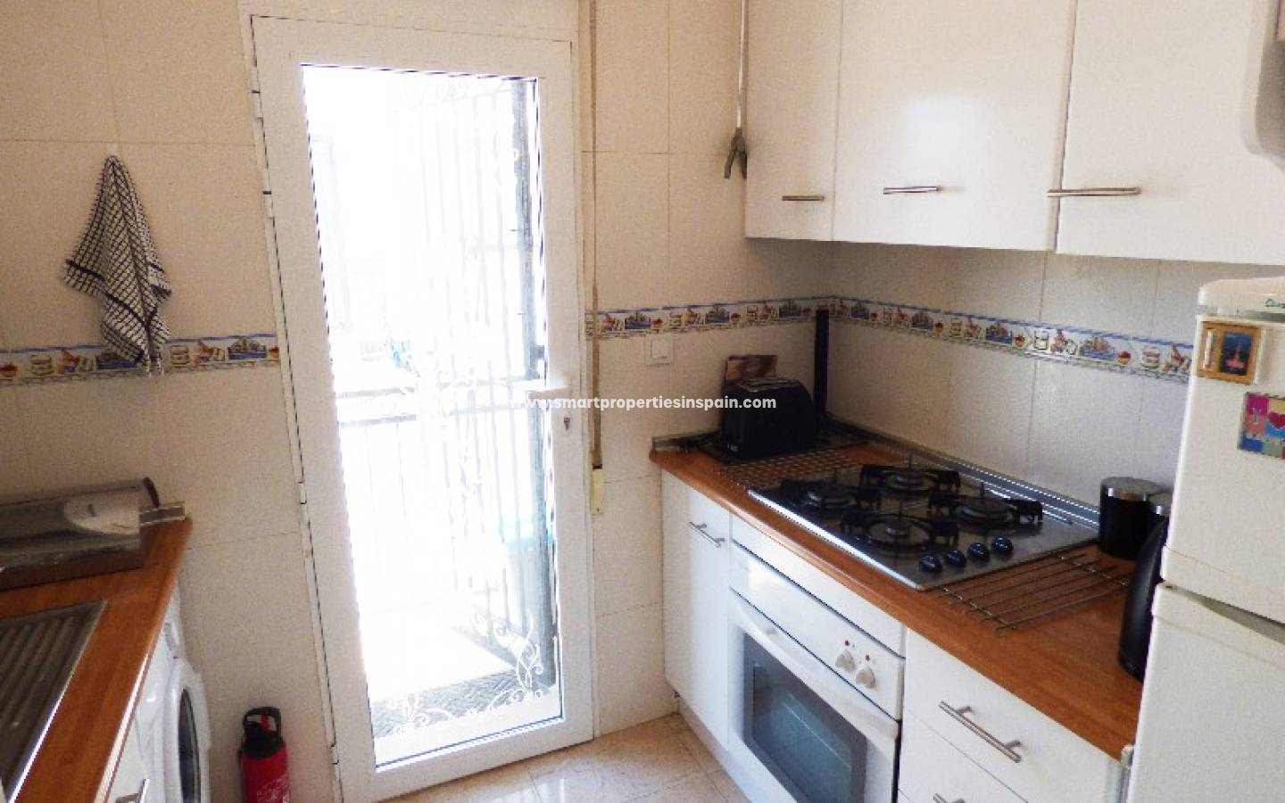 Traemos al mercado una casa de estilo Quad que se encuentra en Urbanización La Marina. En la planta baja consta de una terraza delantera, un salón comedor en la entrada, cocina independiente, 1 habitación doble con armarios empotrados y 1 baño. En la primera planta hay 2 habitaciones dobles con armarios empotrados; uno con acceso al balcón privado y 1 baño. Además un solárium con bonitas vistas de las montañas y el campo. La piscina comunitaria se encuentra a poca distancia. La playa de La Marina está a 7 minutos en coche. La propiedad se vende completamente amueblada. ¡Las visitas son muy recomendadas!