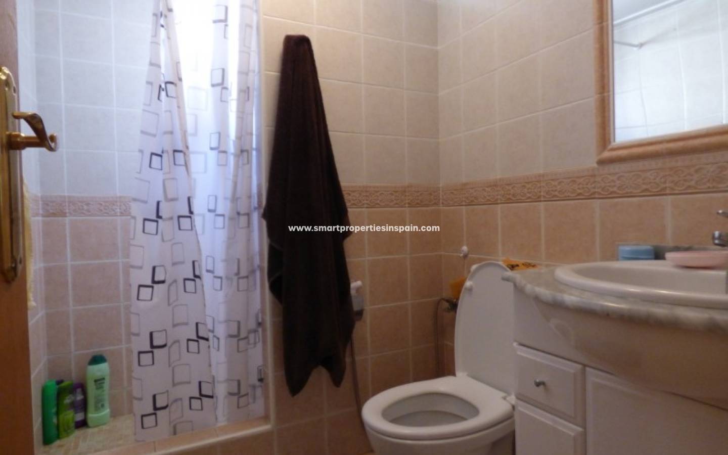 en una zona residencial muy popular con piscina comunitaria, bares, restaurantes y supermercados a mano, La propiedad consta de 3 dormitorios, un salón, cocina abierta, 2 baños,(1 de ellos en suite) y trastero.