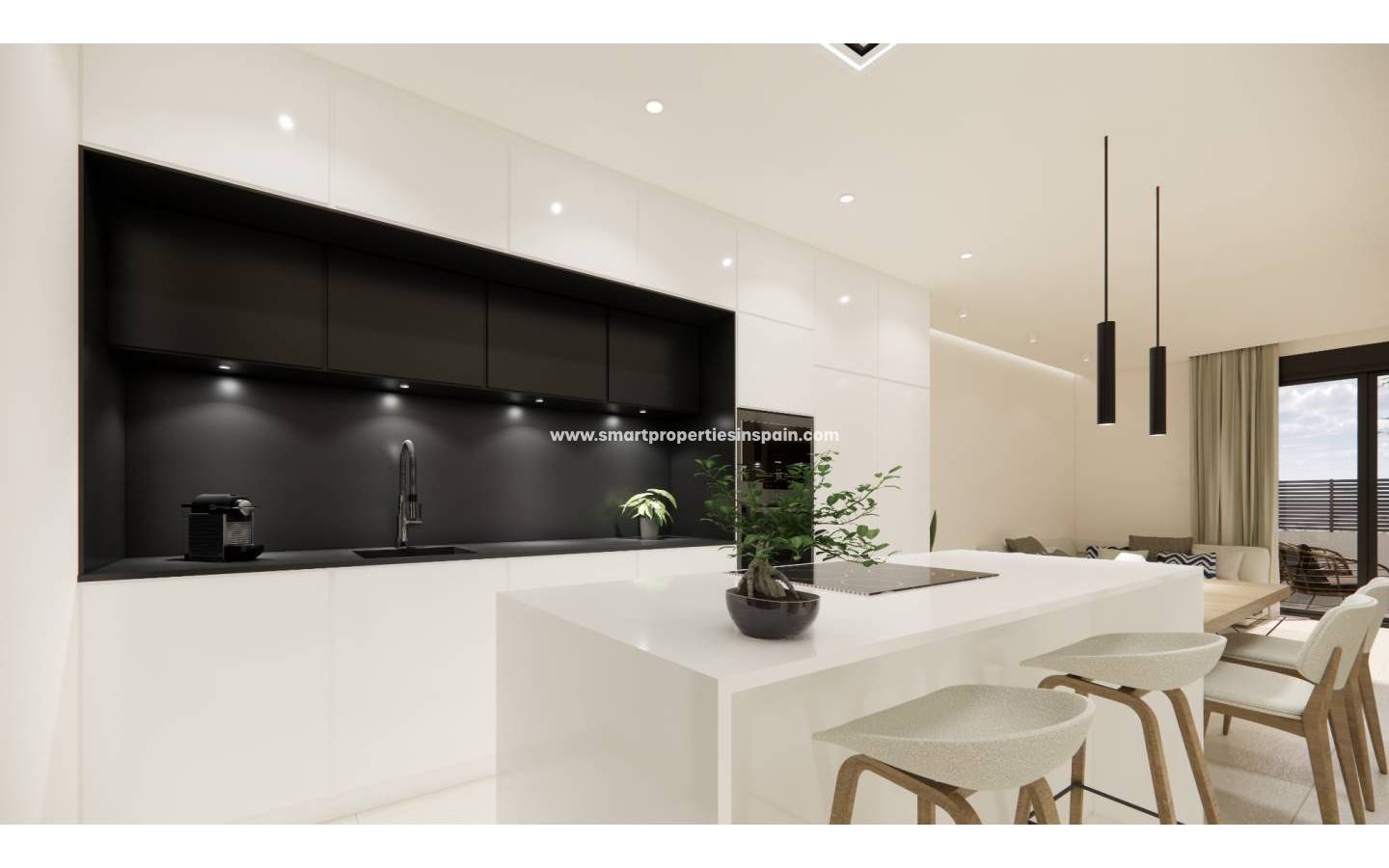 La vivienda destaca por su diseño contemporáneo, con una cocina abierta que favorece la luminosidad y la integración de espacios. Incluye iluminación LED directa e indirecta en toda la casa, aportando un ambiente acogedor y funcional. Los baños están completamente equipados, con muebles modernos y mamparas instaladas, listos para su uso. El suelo es de tarima flotante de primera calidad, garantizando durabilidad y confort.