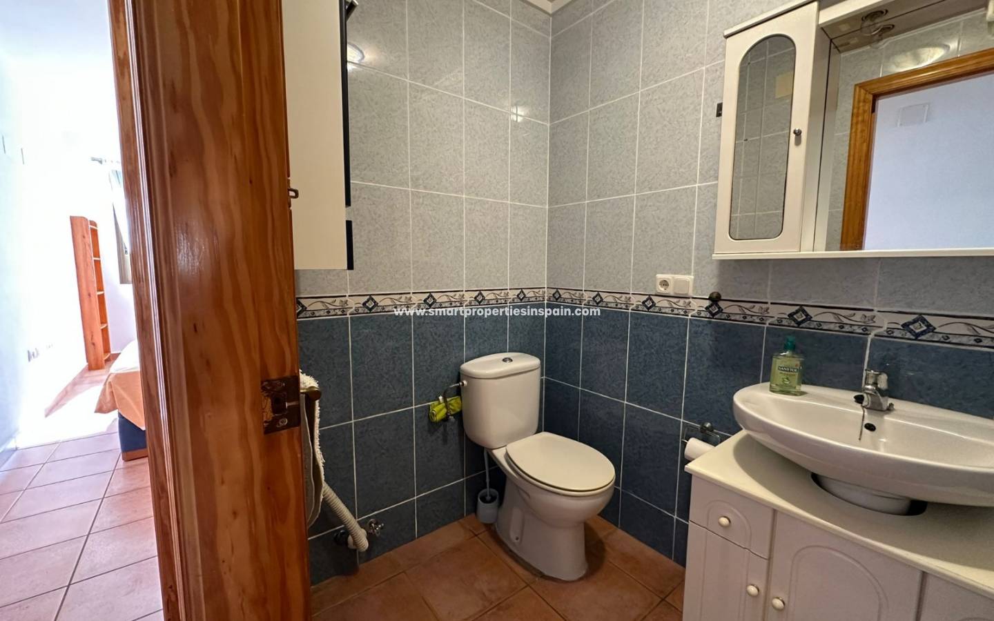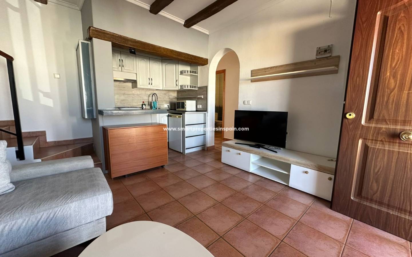 La planta baja dispone de 2 dormitorios, 1 baño completo, cocina–salón y dos terrazas, una delantera y otra trasera, que aportan luz natural y espacios exteriores para disfrutar durante todo el año.