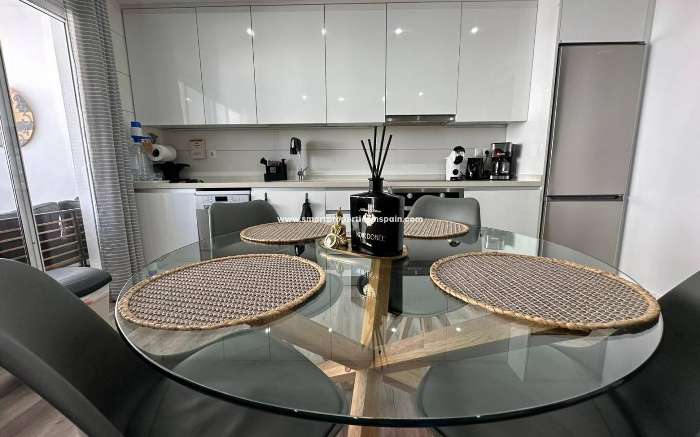 Apartamento luminoso con balcón acristalado y terraza privada en la azotea.