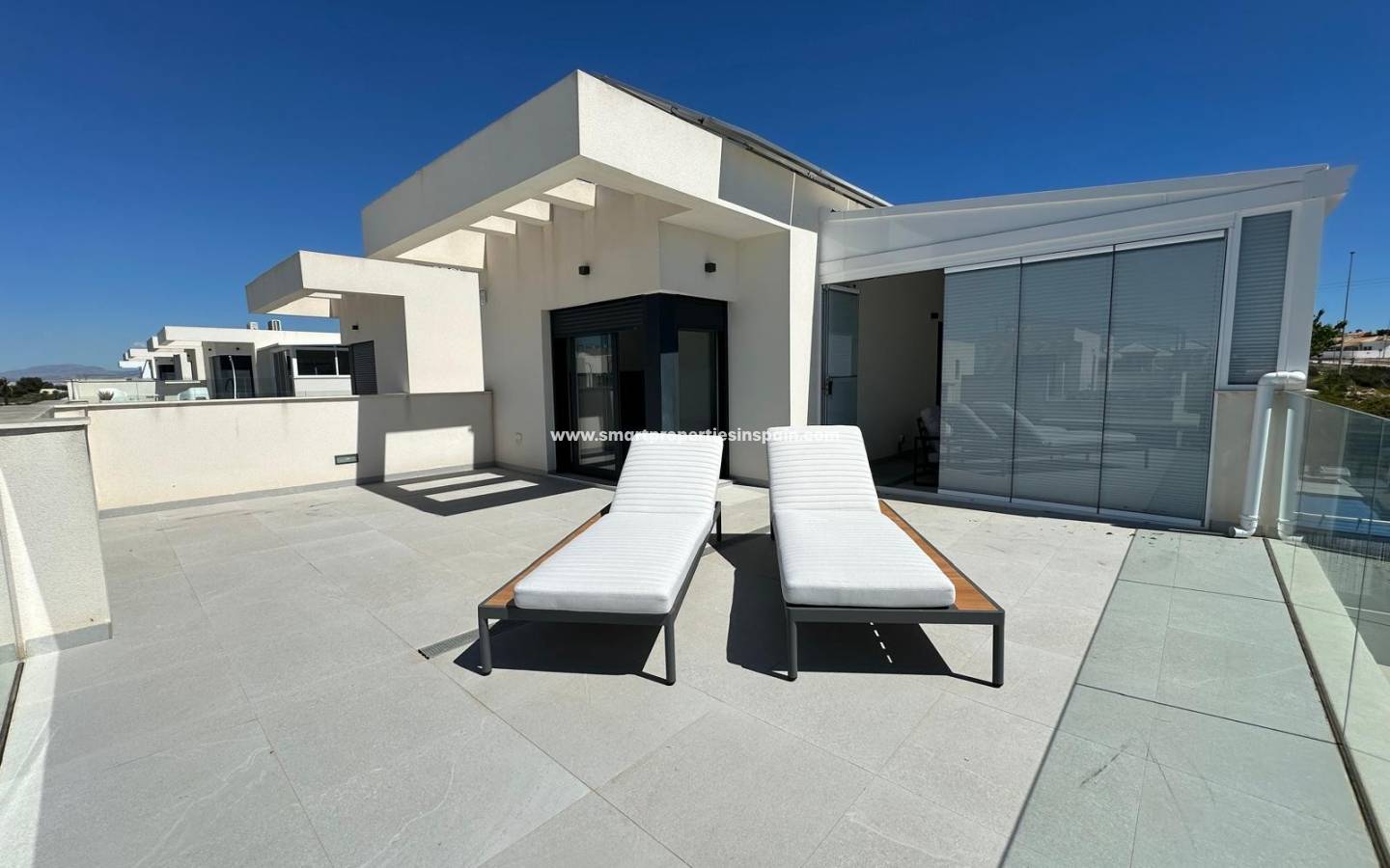 Con 125 m² de superficie habitable, la villa ofrece 3 luminosas habitaciones y 2 baños de alta calidad , todos con comodidades modernas y una distribución bien diseñada. Las zonas de estar de planta abierta crean un ambiente luminoso y acogedor, conectando a la perfección el interior con la espaciosa terraza y solárium de 61,70 m² , ideal para relajarse al sol o disfrutar de agradables veladas al aire libre.