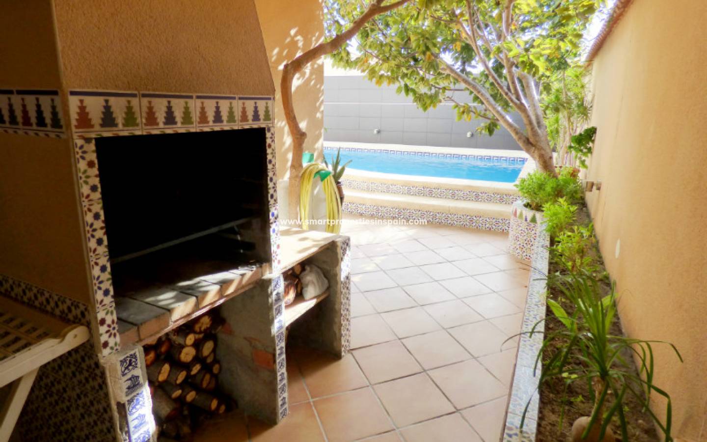 Belle villa située dans l'urbanisation La Marina. Cette belle maison a été récemment rénové, elle dispose de 5 chambres avec armoires encastrées, 1 salle de bain, une cuisine, 2 salles de séjour, salle de magasin et un débarras et une veranda. La maison est entièrement meublée !! Il y a aussi la climatisation et une cheminée.