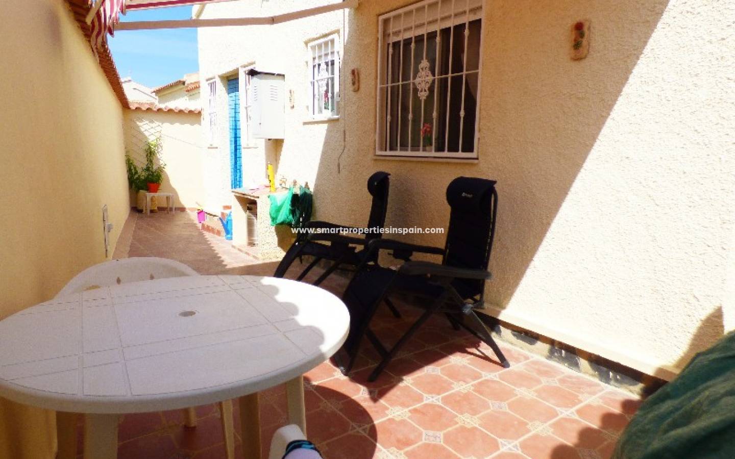MAISON INDIVIDUELLE SITUÉE DANS L'URBANISATION DE LA MARINA, elle comprend 2 chambres, 1 salle de bains et une cuisine séparée. Cette propriété dispose de la climatisation, d'un accès Internet, de la télévision par satellite et de barres de sécurité. La fonctionnalité ajoutée est une salle de stockage et est vendue entièrement meublée !!