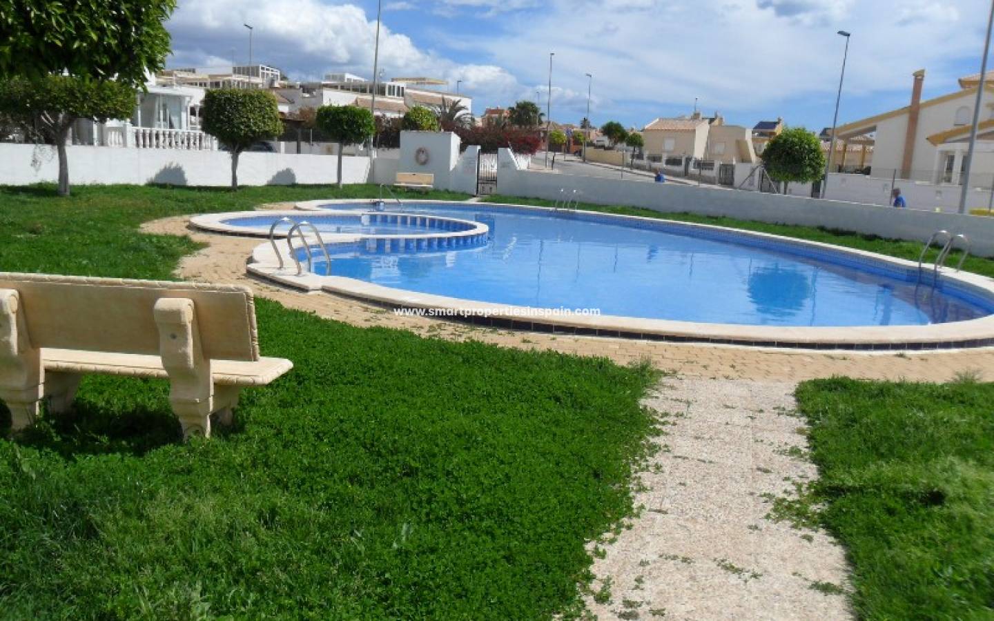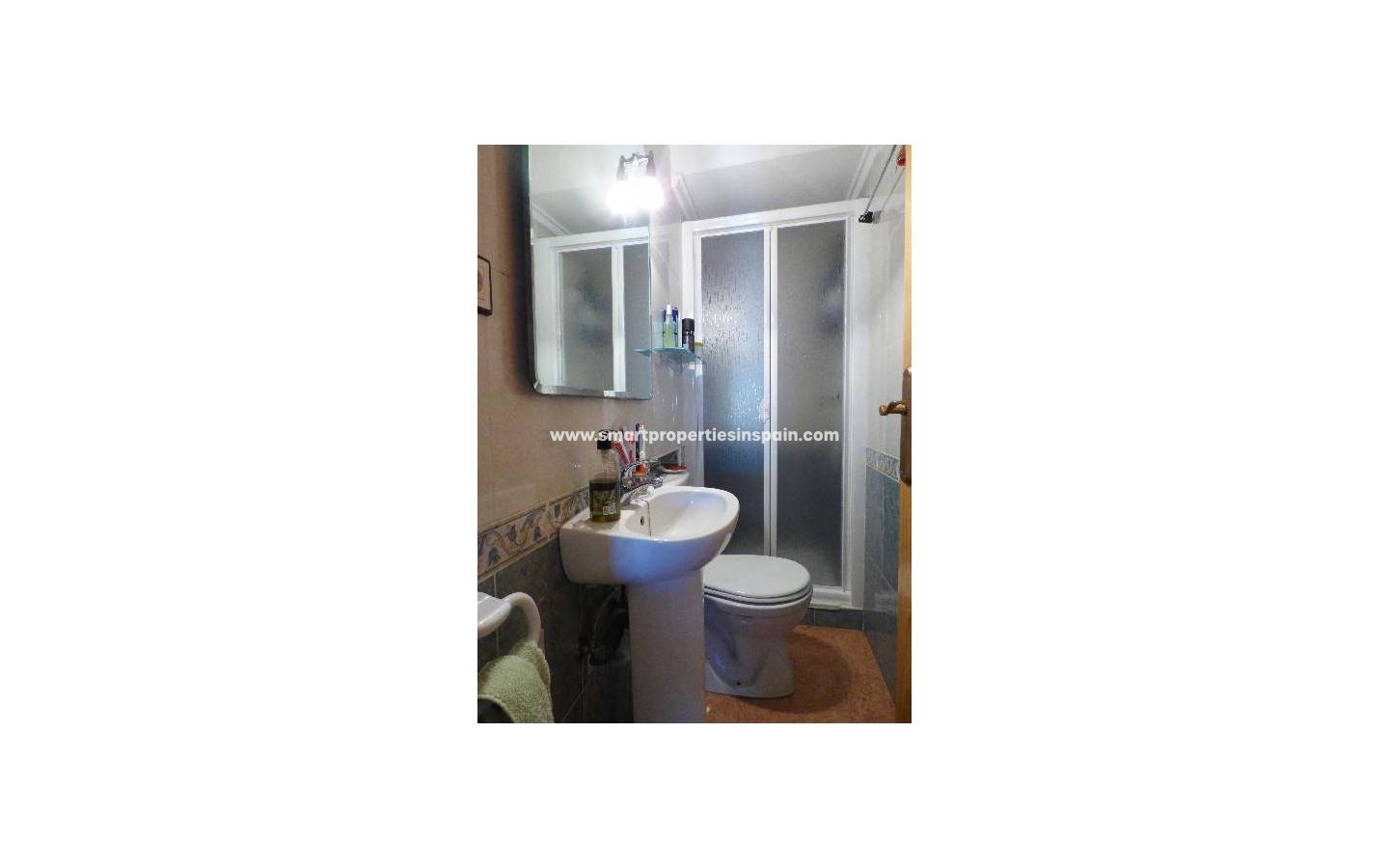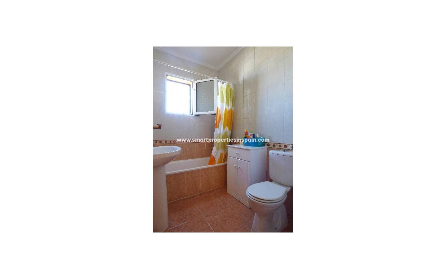 Nous vous présentons cette maison quad située à La Marina. Cette maison a 3 chambres doubles avec placards, 2 salles de bains, salon, cuisine séparée et un solarium tous disposés sur deux étages. Double vitrage et grilles de sécurité sur toutes les fenêtres. Dehors, vous trouverez un jardin carrelé avec parking hors rue et une piscine communautaire proche de la maison. Elleest meublé et dispose également de climatisation. La région offre un bon accès à toutes les commodités.