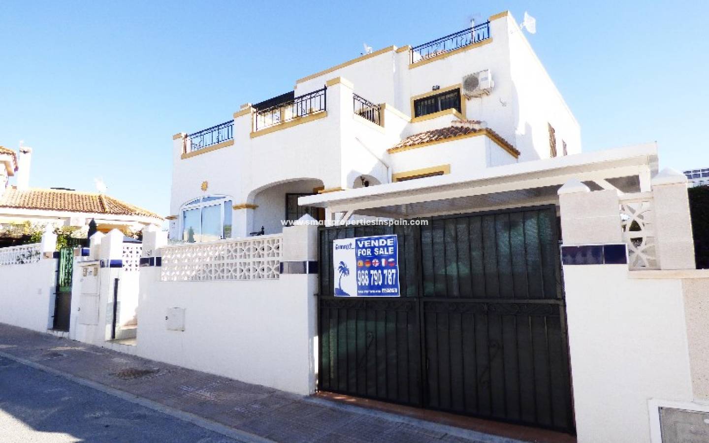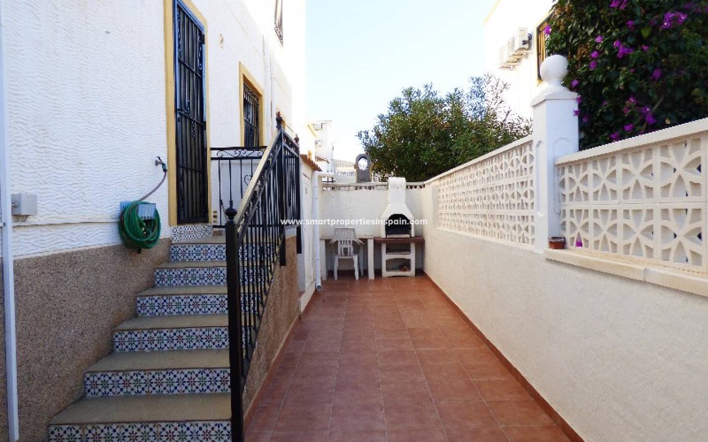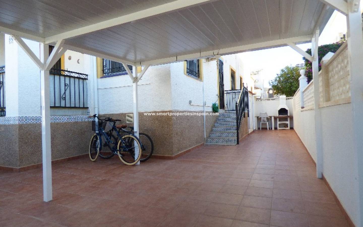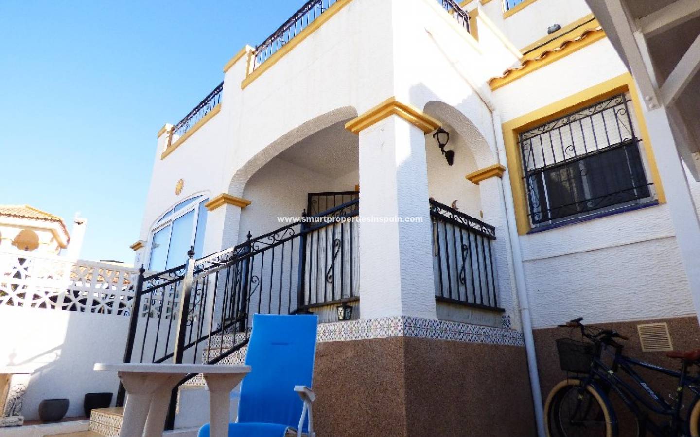 Nous vous présentons cette maison quad située à La Marina. Cette maison a 3 chambres doubles avec placards, 2 salles de bains, salon, cuisine séparée et un solarium tous disposés sur deux étages. Double vitrage et grilles de sécurité sur toutes les fenêtres. Dehors, vous trouverez un jardin carrelé avec parking hors rue et une piscine communautaire proche de la maison. Elleest meublé et dispose également de climatisation. La région offre un bon accès à toutes les commodités.