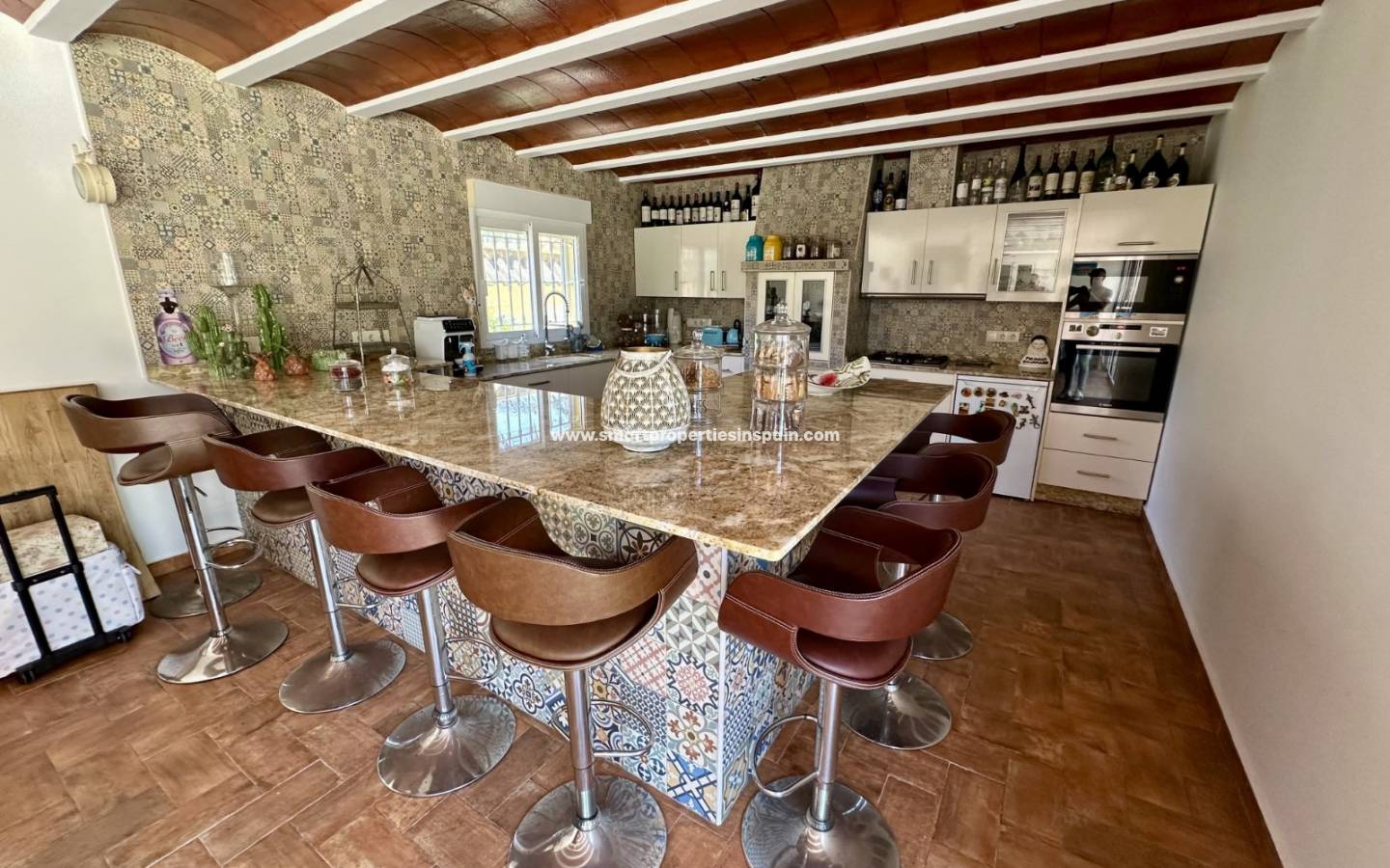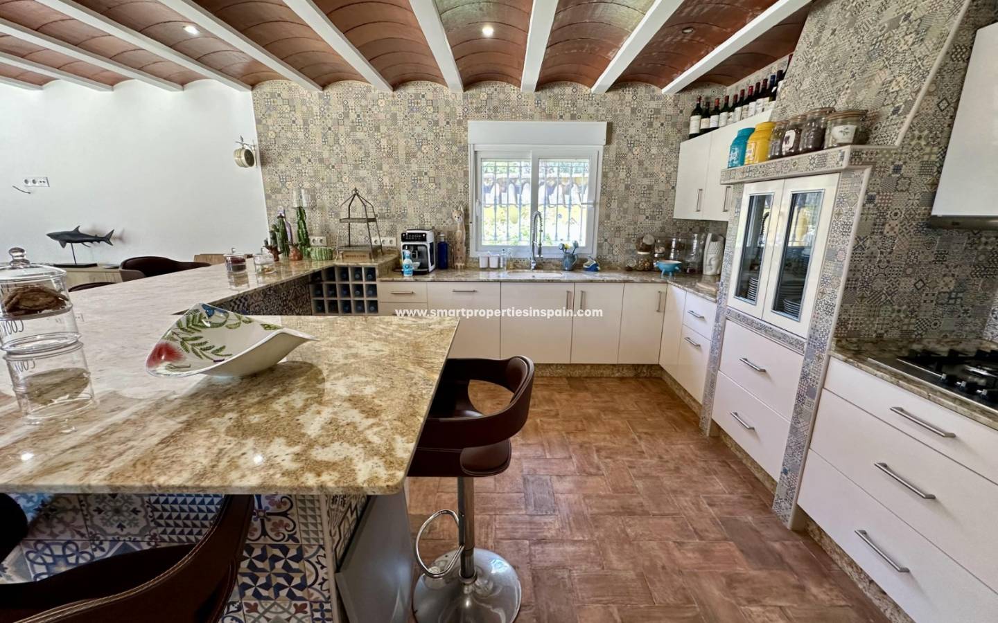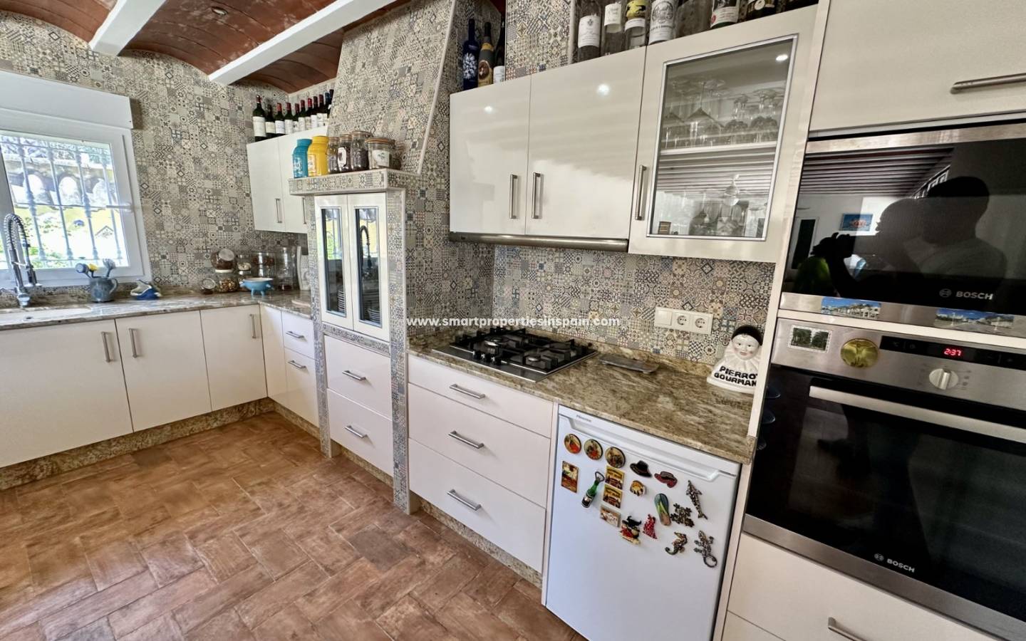 Il a une magnifique cuisine ouverte, équipée (réfrigérateur, four, micro-ondes) et une autre arrière cuisine d'environ 10 m2, équipée de placards, d'un four encastré et d'un réfrigérateur.