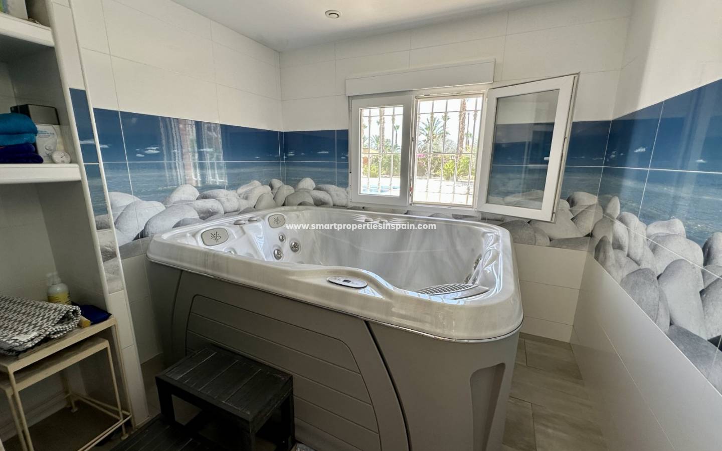 La maison offre de nombreux extras modernes tels que la porte d'accès électrique, l'alarme, les caméras connectées au smartphone, la climatisation réglable dans chaque coin, le chauffage central et les moustiquaires à toutes les fenêtres.