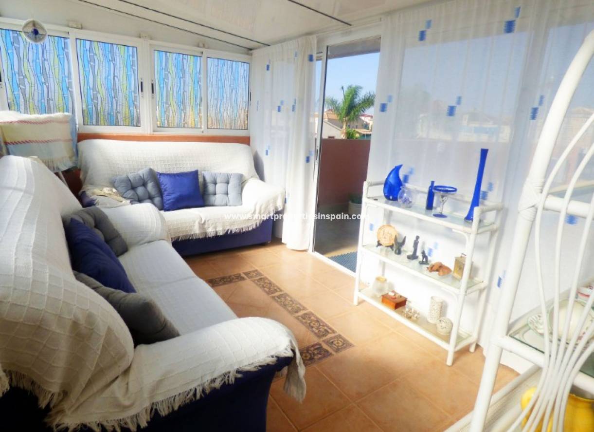 Nous sommes heureux d’apporter cette maison de style julia en exclusivité, dans l’urbanisation de la marina, à proximité de tous les services. Elle possède une terrasse privée avec système d’irrigation, un espace pour garer la voiture et un petit porche à l’entrée principale du jardin. Il est pavé sur le devant et comporte un espace vert sur le côté. La maison se compose d'un salon, d'une cuisine entièrement équipée, de trois chambres à coucher et de deux salles de bain. Le grand solarium offre une belle vue, d'une pergola, d'un jacuzzi et d'une pièce construite idéale pour la saison hivernale.