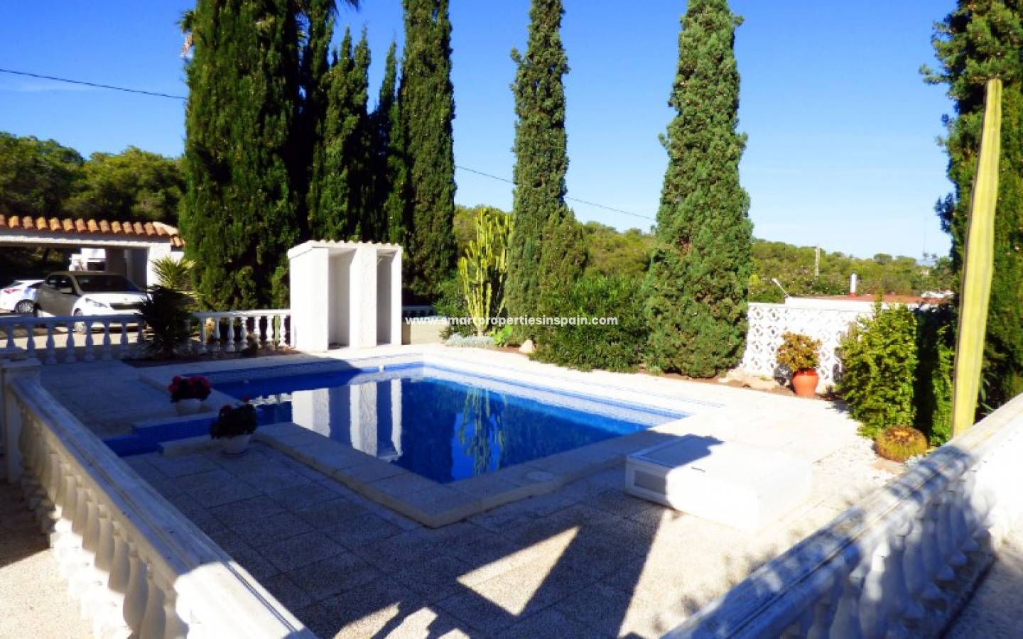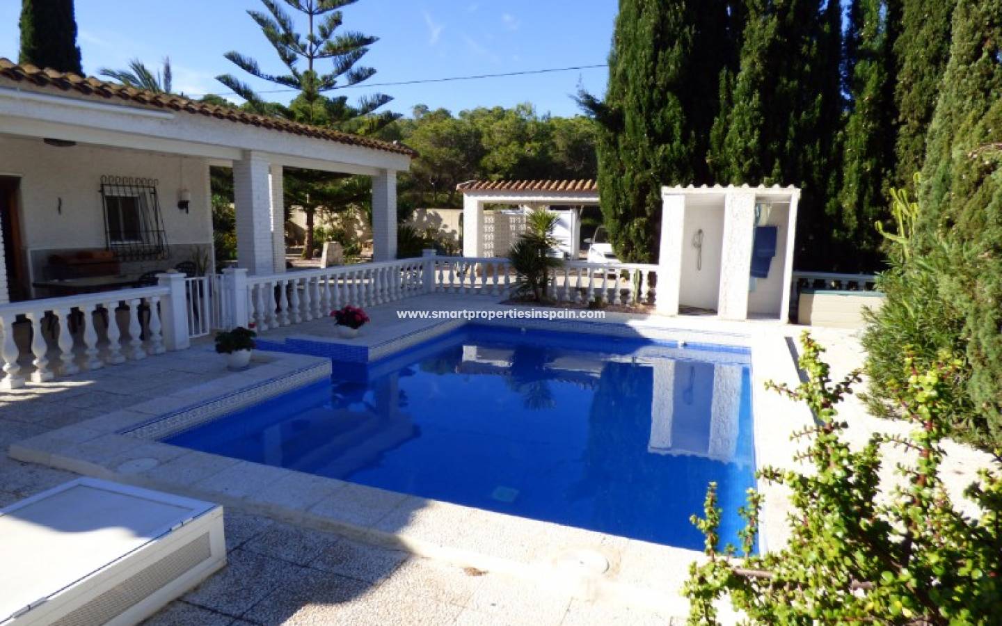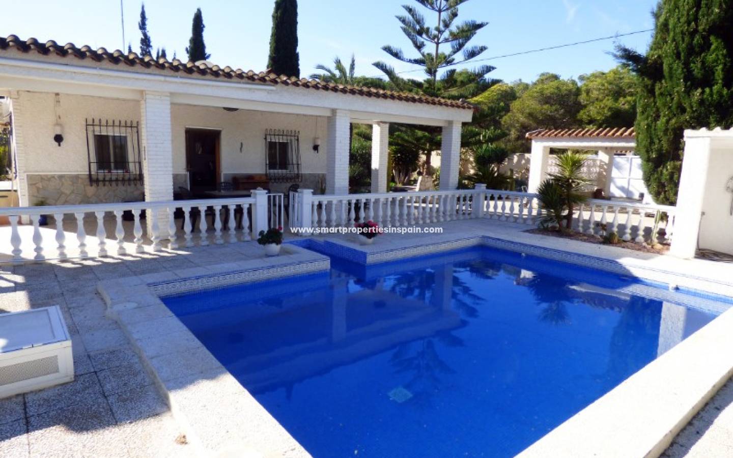 A l'intérieur de la propriété il y a un salon / salle à manger climatisé très spacieux avec cheminée et une cuisine moderne entièrement équipée. Il y a 4 chambres spacieuses avec air conditionné, 2 avec placards et 2 salles de bains familiales. Des barres de sécurité, des stores et des moustiquaires sont installés dans toutes les fenêtres. Les visites sont fortement recommandées pour apprécier l'emplacement de cette maison.