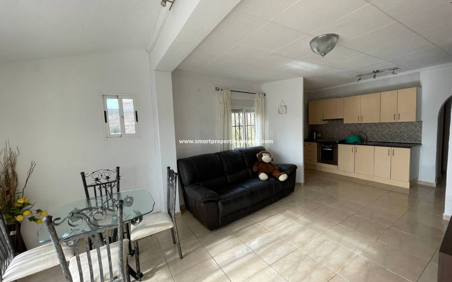 La maison d'hôtes de style Finca a une entrée totalement indépendante et son propre parking, 3 chambres de bonne taille, un espace salle à manger/salon/cuisine très lumineux et une salle de bain. Il y a des portes coulissantes donnant sur une terrasse très ensoleillée où vous pourrez prendre votre petit-déjeuner et bien plus encore. Des escaliers extérieurs mènent à un très grand solarium qui offre également une vue magnifique et est également l'endroit potentiel pour relier les 2 propriétés si vous le souhaitez.