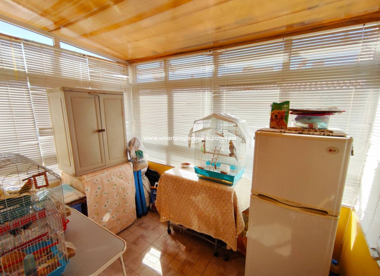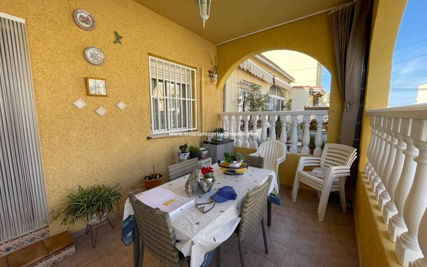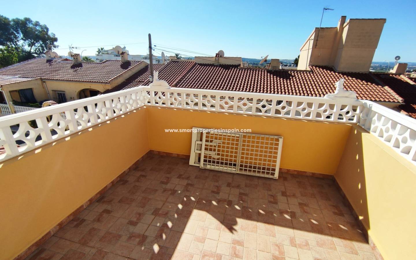 La maison est entièrement rénovée et en très bon état, prête à emménager. Elle comporte deux étages. Au rez-de-chaussée, nous accédons à un très grand porche vitré, avec un barbecue, idéals pour organiser des déjeuners et des dîners en famille et entre amis. Dès que nous entrons dans la maison, nous trouvons au rez-de-chaussée, une chambre double assez grande, avec dressing, qui bénéficie d'une très bonne luminosité, une salle de bain/douche et un salon/salle à manger très spacieux et lumineux avec air conditionné . Une cuisine indépendante entièrement équipée et un garde-manger/buanderie de bonne taille pour plus de rangement. Les escaliers nous mènent à l'étage supérieur, où nous trouvons deux chambres, dont une assez grande et qui donne accès à un balcon/terrasse de très bonne taille, où nous pouvons profiter de la vue sur le parc et de la tranquillité de l'endroit. Nous avons, au même étage, une autre terrasse de l'autre côté de la maison, également assez grande, et qui offre une vue magnifique sur les montagnes de la région, sur Guardamar et la mer, et bien plus encore.