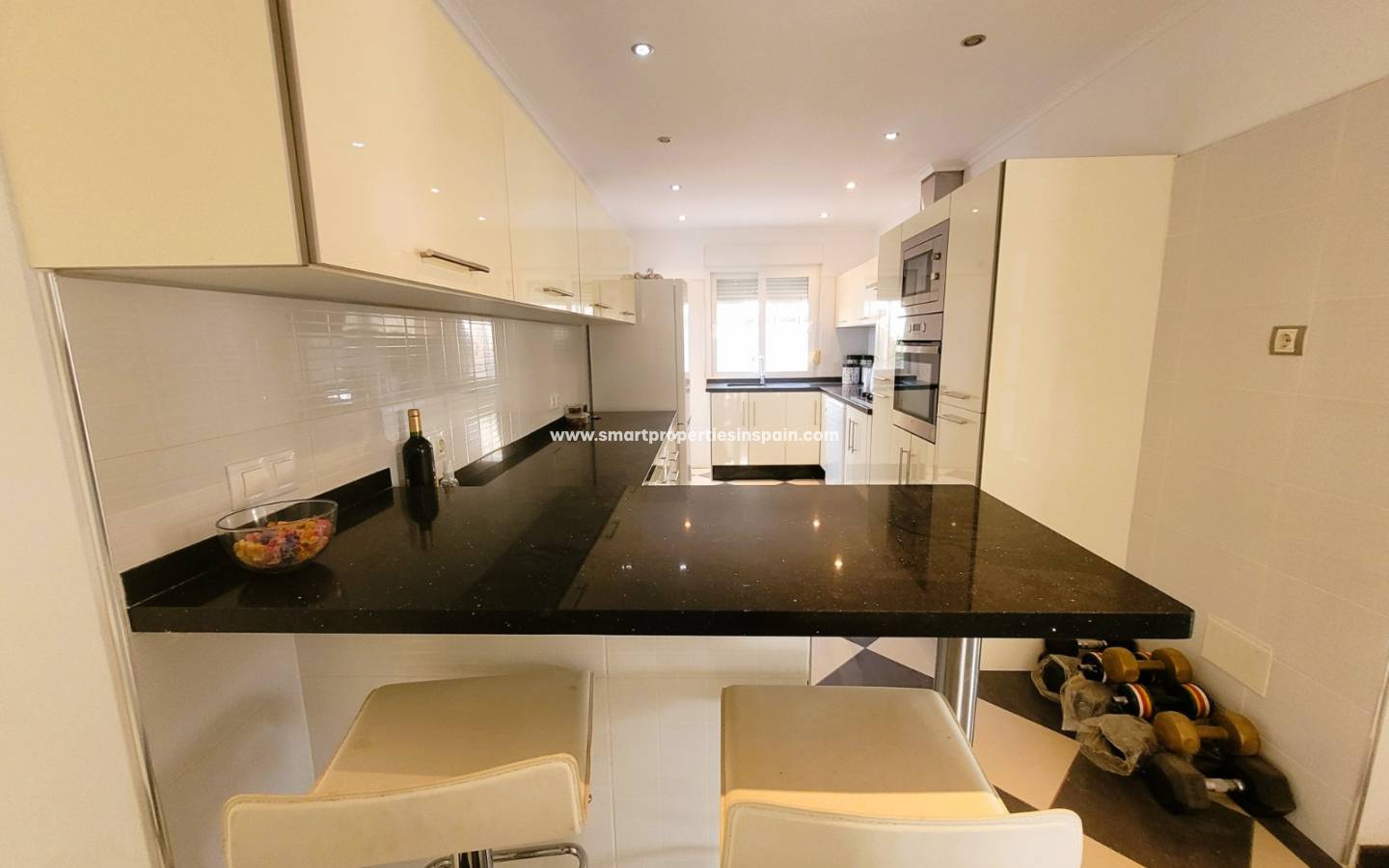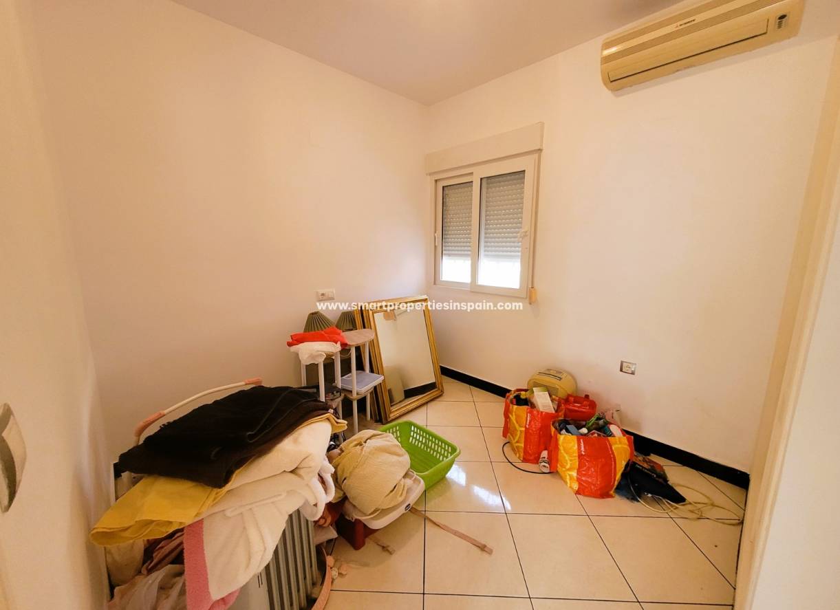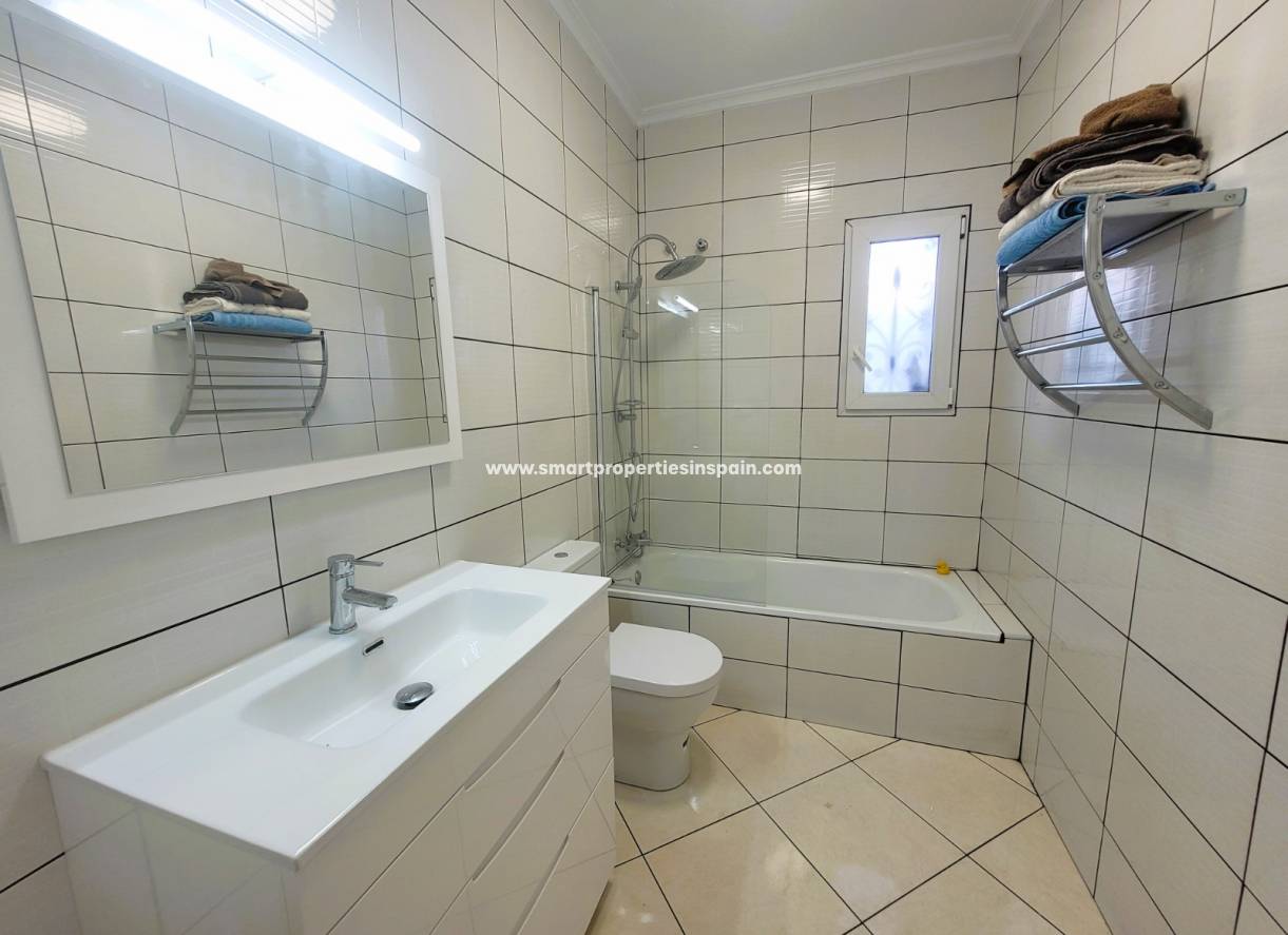 En entrant dans la propriété, nous avons un salon de très bonne taille qui bénéficie d'une très bonne lumière naturelle, une cuisine indépendante entièrement équipée d'appareils électroménagers et de très bonne taille, avec un bar pour prendre le petit déjeuner ou prendre d'autres repas, la porte de la cuisine nous mène à à une galerie et les escaliers nous mènent au solarium. Nous avons une pièce qui sert actuellement de salle à manger mais qui peut parfaitement être transformée en chambre, nous avons trois chambres de très bonne taille et l'une d'elles a une salle de bain attenante.