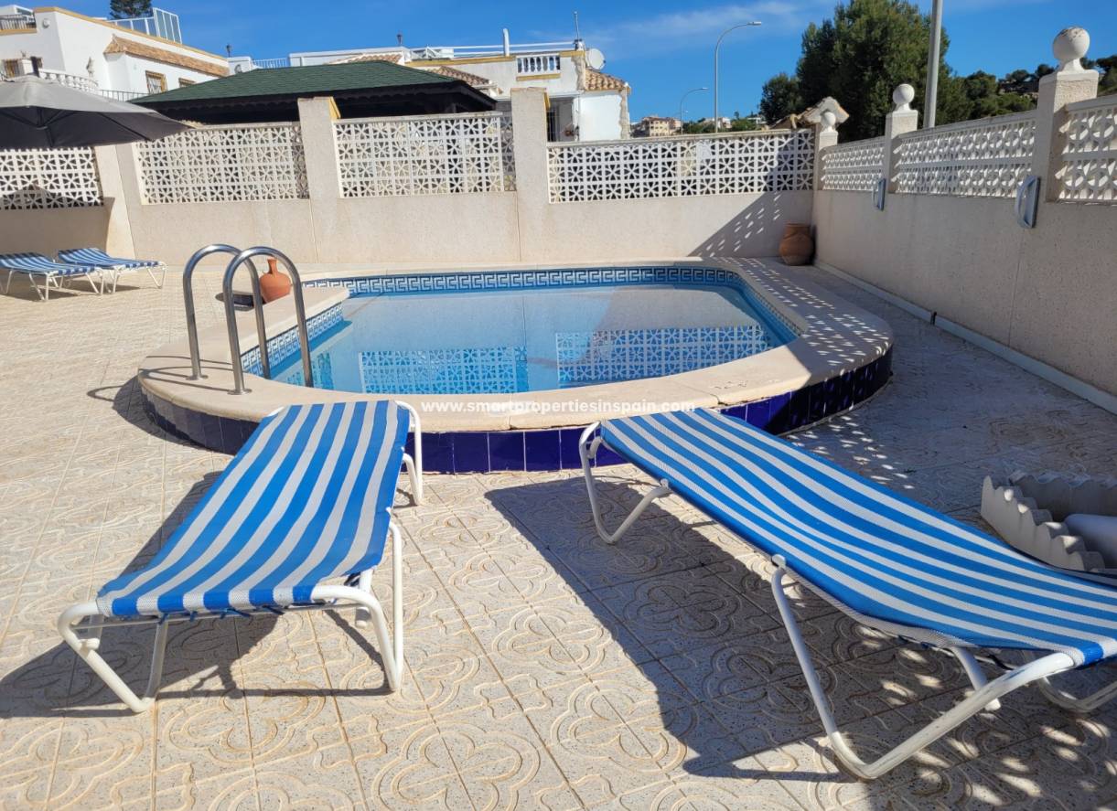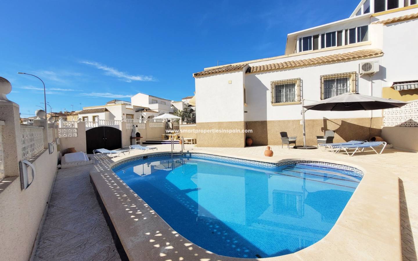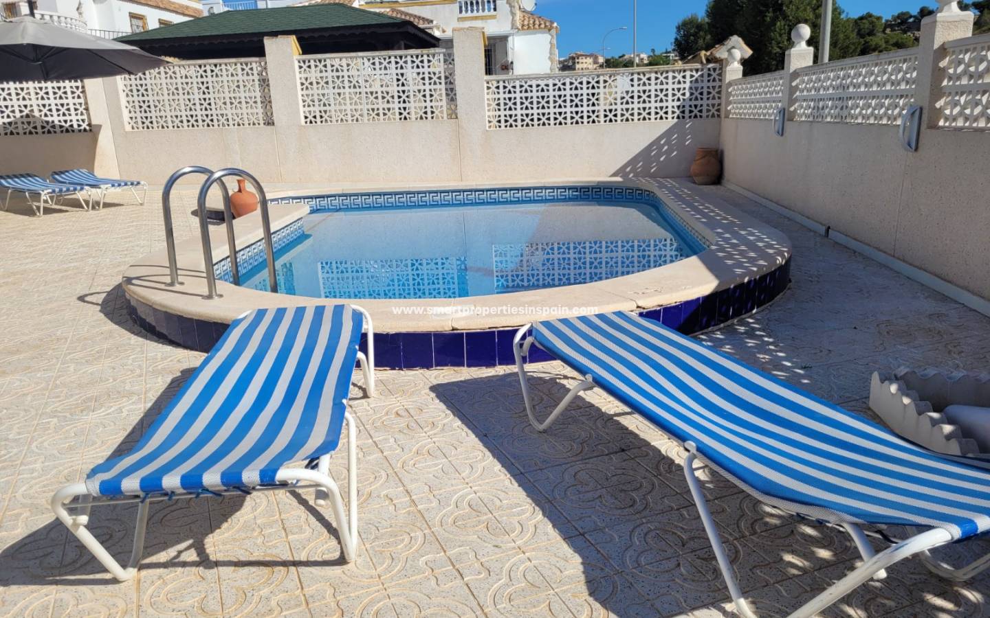 Nous sommes heureux de vous présenter cette villa jumelée de style 'Julia', située à urb. la marina dans un endroit très calme et à une courte distance de la zone commerciale. La propriété est sur un étage et dispose d'une belle piscine privée. En entrant dans la propriété, on découvre un jardin entièrement carrelé pour moins d'entretien. En entrant dans la maison, nous avons un porche et une terrasse où vous pourrez vous reposer et profiter de la tranquillité, un salon / salle à manger assez spacieux, lumineux et climatisé, trois chambres doubles chacune avec air conditionné et deux avec placards intégrés, tous Ils bénéficient de la lumière naturelle. Nous avons également deux salles de bains, dont une en suite et une fantastique cuisine ouverte récemment rénovée, entièrement équipée et en très bon état, la porte de la cuisine nous donne accès à une galerie, où vous pouvez mettre plus d'appareils et ranger des choses, les escaliers Ils emmenez-nous dans un joli solarium, grand avec de très belles vues vers l'urbanisation. En quittant la partie supérieure de la maison, nous avons des escaliers qui nous mènent à une piscine de très bonne taille, où nous pouvons nous baigner en famille et entre amis, nous avons un espace pour garer un véhicule, mais comme vous pouvez vous garer à l'extérieur sans problème, Cet espace est donc utilisé en disposant d'une table avec des chaises et d'un auvent assez grand qui nous protège du soleil pendant que nous nous reposons, et profitons de la piscine, et/ou de bons repas en famille et entre amis.