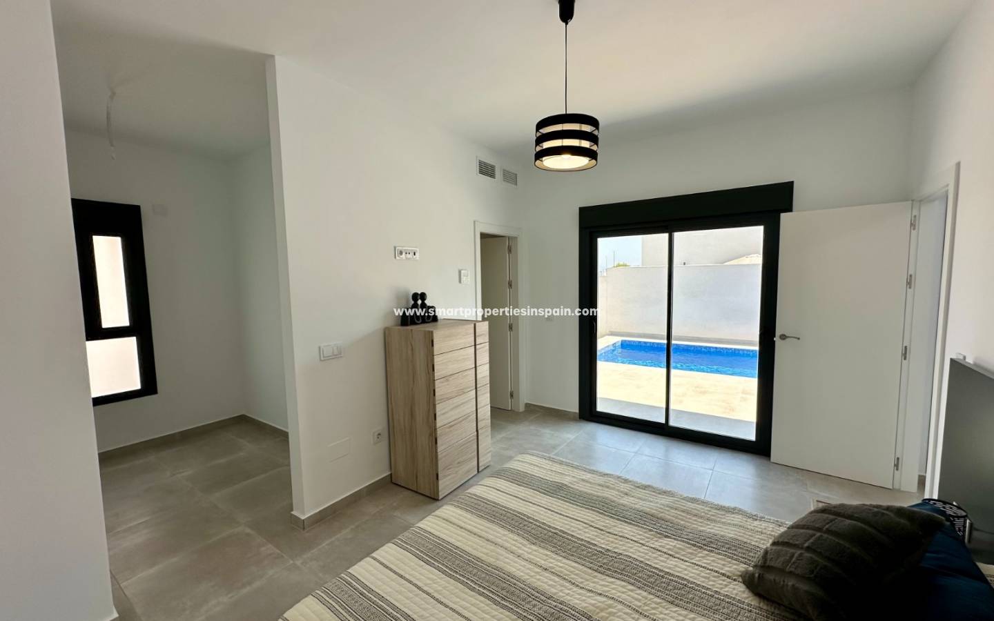 En entrant dans la maison, nous sommes accueillis par un Salon-Salle à manger : De bonne taille, avec beaucoup de lumière naturelle grâce à une grande fenêtre qui donne un accès direct au jardin et à la piscine, la Cuisine Ouverte : Moderne et entièrement équipée de tous les appareils nécessaires, idéal pour Pour ceux qui apprécient un espace fonctionnel et élégant, la maison dispose de trois pièces spacieuses, toutes dotées de grandes fenêtres offrant une vue sur le jardin et la piscine.
