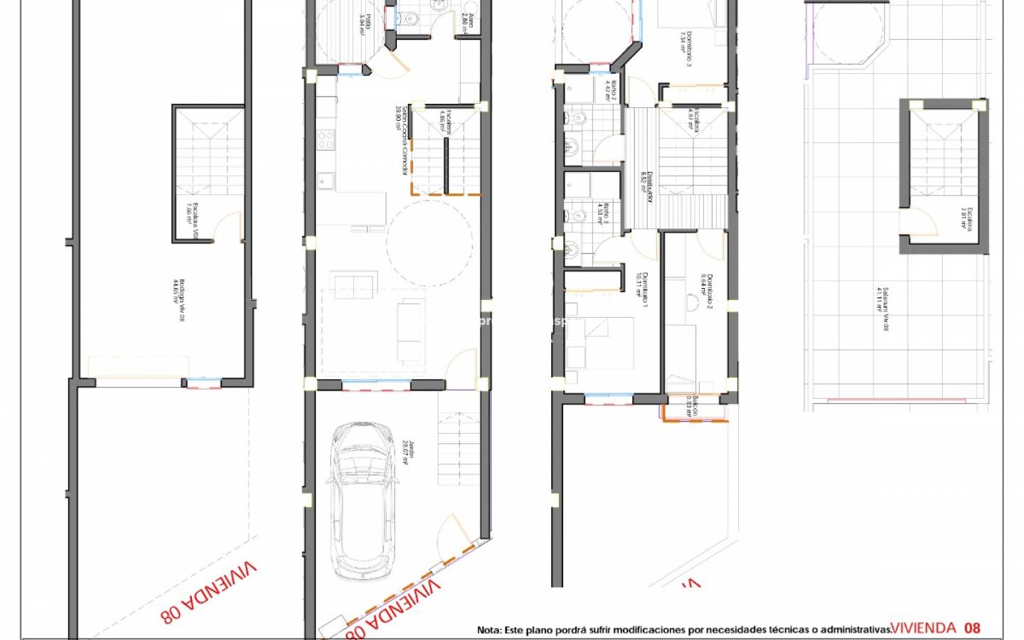Dotées de trois chambres spacieuses, ces maisons sont idéales pour les familles à la recherche d'un logement fonctionnel et élégant. Les finitions de haute qualité garantissent une durabilité et une finition impeccable dans tous les détails.
