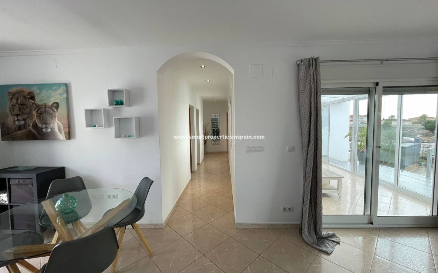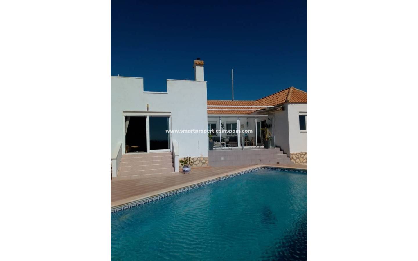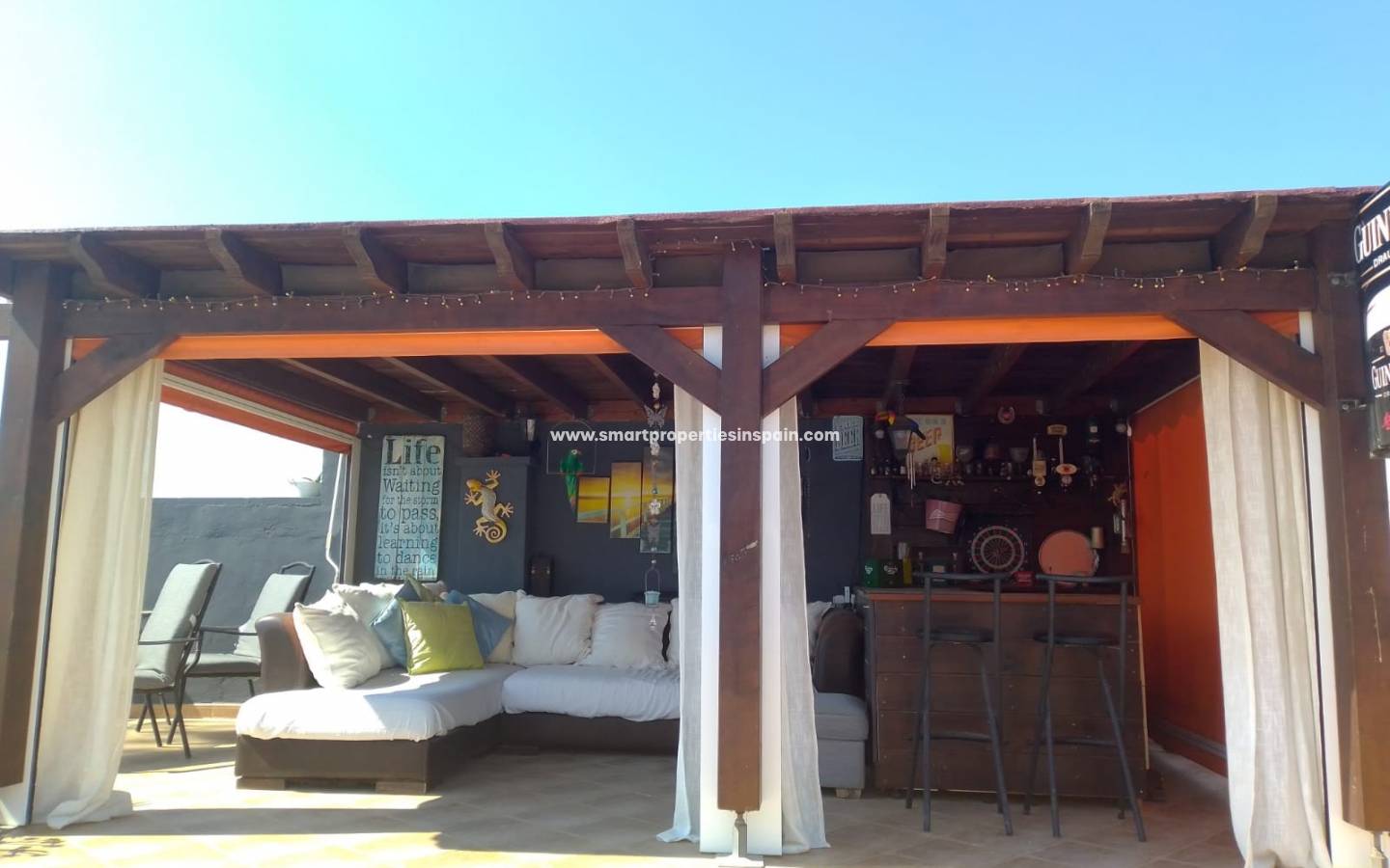 Het pension in Finca-stijl heeft een volledig onafhankelijke ingang en een eigen parkeerplaats, 3 ruime slaapkamers, een zeer lichte open eetkamer/lounge/keuken en een badkamer. Er zijn schuifdeuren naar een zeer zonnig terras waar u heerlijk kunt ontbijten en nog veel meer. Een buitentrap leidt naar een zeer groot solarium dat ook een prachtig uitzicht heeft en ook de potentiële plaats is om de 2 woningen met elkaar te verbinden als u dat wenst.