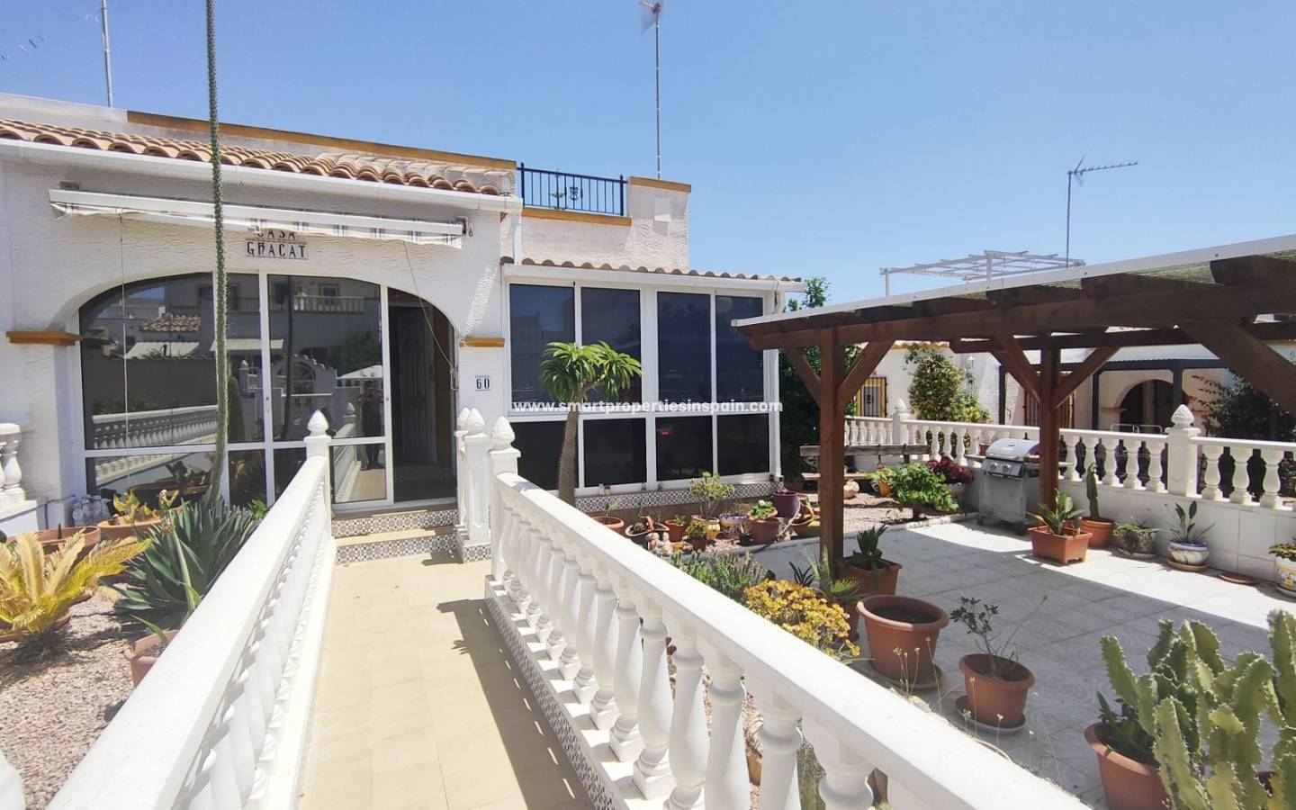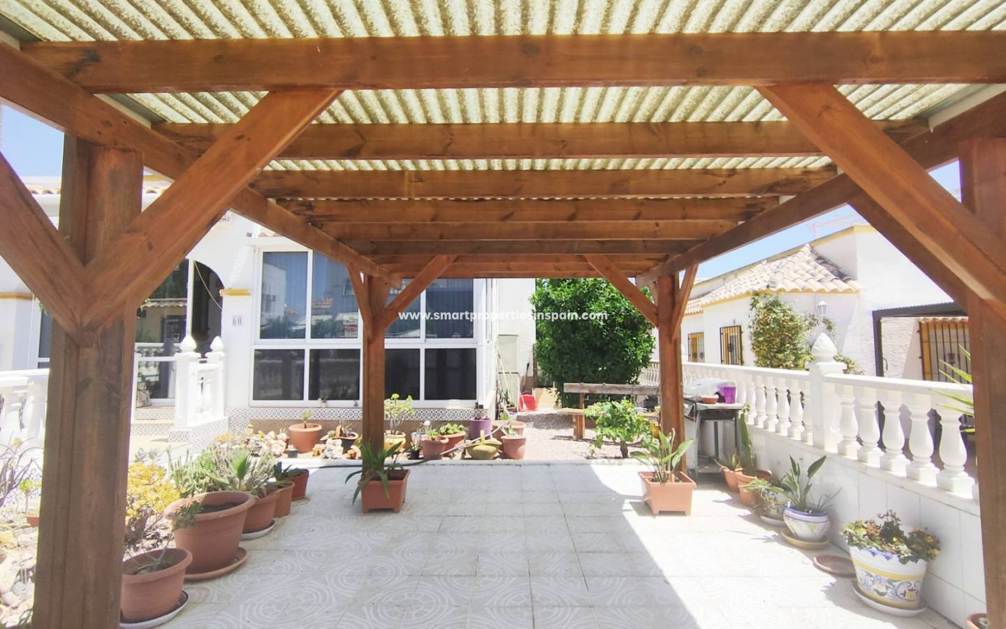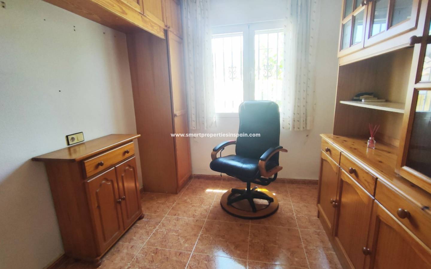 De woning ligt dicht bij voorzieningen en op slechts 500 meter lopen van een populair commercieel gebied, met veel voorzieningen zoals bars, restaurants, winkels, twee supermarkten en meer. De woning heeft een bebouwde oppervlakte van 70m² en staat op een mooi perceel van ongeveer 175m². Het pand is een bungalowstijl met alle accommodatie op één niveau voor gemakkelijk leven, te beginnen bij de ingang is er een klein overdekt terras, ideaal om te dineren. Dit leidt naar een comfortabele ruime woonkamer met een speciale eetkamer voorzien van airconditioning. Er is een aparte keuken en aan de achterzijde een bijkeuken met meer ingebouwde kasten voor opslag. Drie tweepersoons slaapkamers waarvan twee met inbouwkasten en een badkamer met wastafel, toilet en een ruime douche. Toegang via de bijkeuken, een trap leidt naar een afgewerkte serre, kan worden gebruikt als een tweede lounge (zomerkamer) met openslaande deuren naar een groot dakterras.