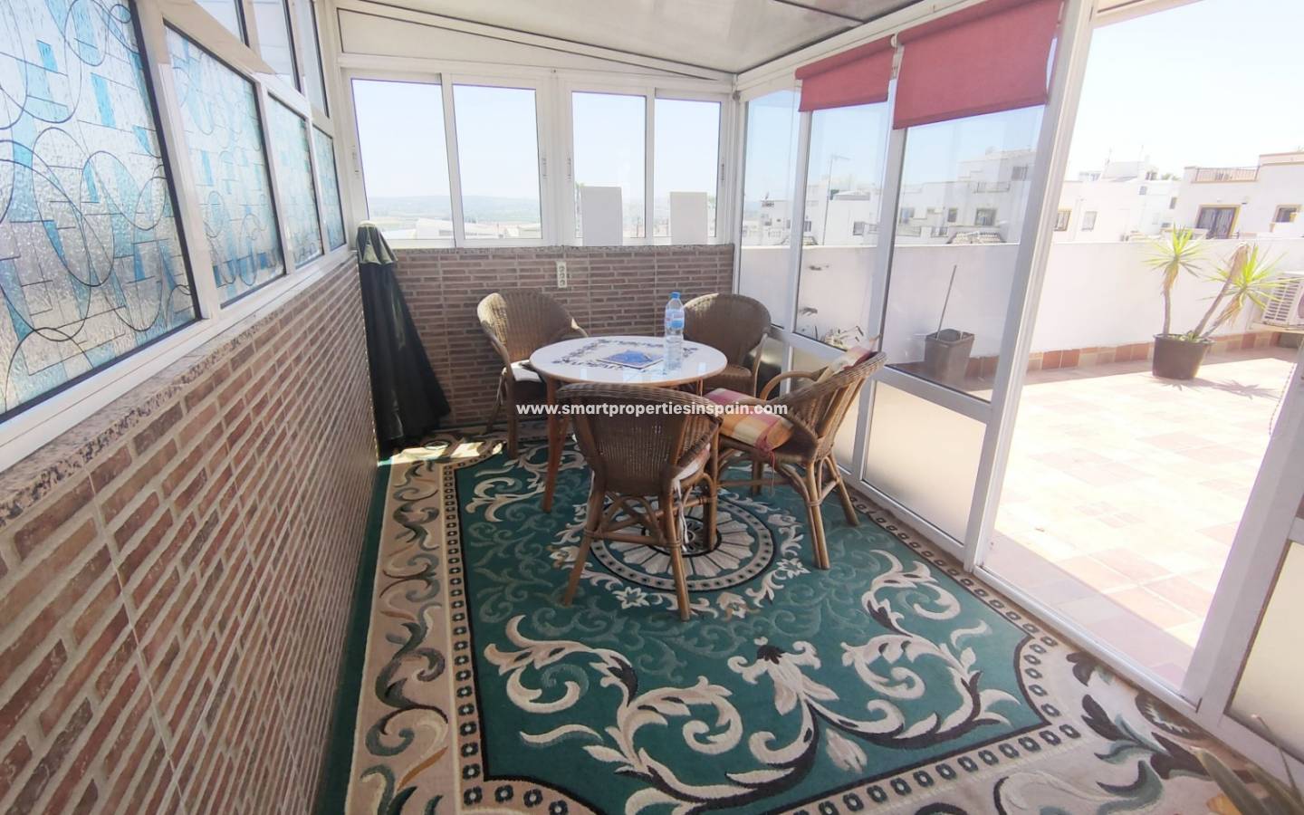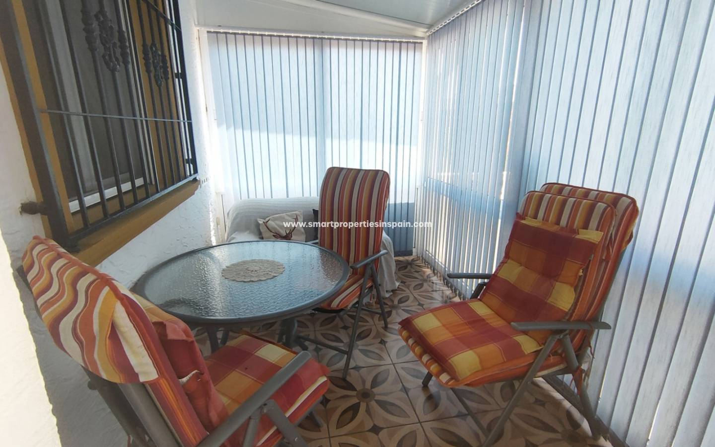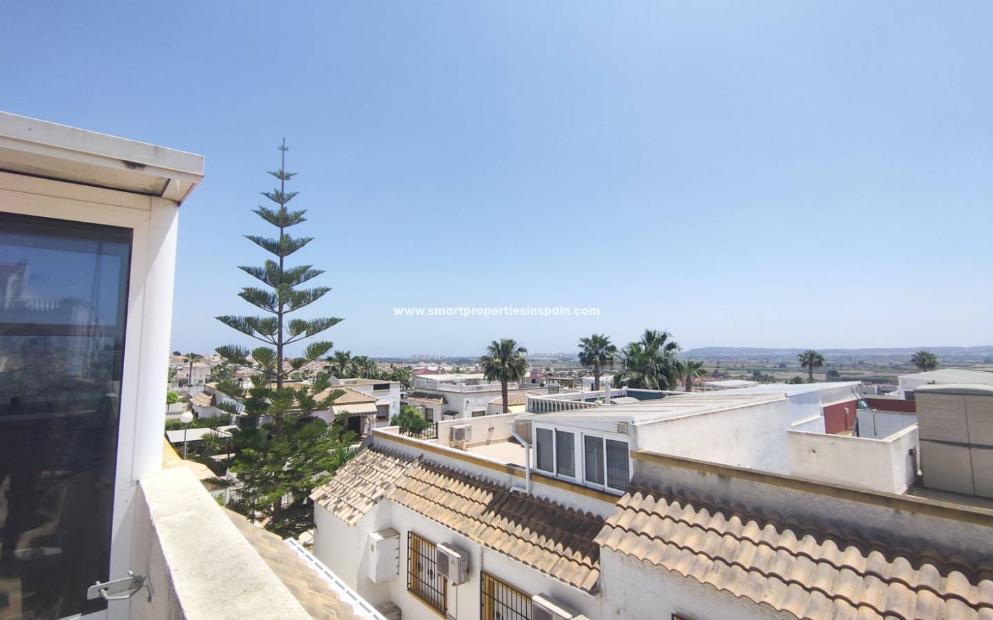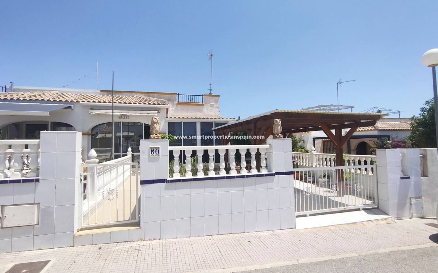 De woning ligt dicht bij voorzieningen en op slechts 500 meter lopen van een populair commercieel gebied, met veel voorzieningen zoals bars, restaurants, winkels, twee supermarkten en meer. De woning heeft een bebouwde oppervlakte van 70m² en staat op een mooi perceel van ongeveer 175m². Het pand is een bungalowstijl met alle accommodatie op één niveau voor gemakkelijk leven, te beginnen bij de ingang is er een klein overdekt terras, ideaal om te dineren. Dit leidt naar een comfortabele ruime woonkamer met een speciale eetkamer voorzien van airconditioning. Er is een aparte keuken en aan de achterzijde een bijkeuken met meer ingebouwde kasten voor opslag. Drie tweepersoons slaapkamers waarvan twee met inbouwkasten en een badkamer met wastafel, toilet en een ruime douche. Toegang via de bijkeuken, een trap leidt naar een afgewerkte serre, kan worden gebruikt als een tweede lounge (zomerkamer) met openslaande deuren naar een groot dakterras.
