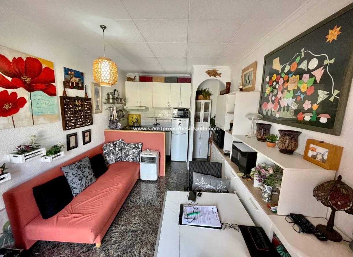 Smart Properties presenteert dit mooie herenhuis model Josefina in Urb La Marina. Het pand is verdeeld over slechts één verdieping. Het heeft een woon-eetkamer met slaapbank, 1 slaapkamer, airconditioning, 1 badkamer en een prachtig privé-terras.