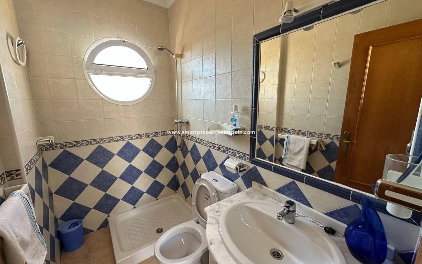 Boven: Privacy en ontspanning. Boven vindt u een grote slaapkamer met een ruime inbouwkast, ideaal om gasten te ontvangen of voor flexibel gebruik, afhankelijk van uw behoeften. U vindt er ook een complete badkamer en een solarium, een privéruimte waar u kunt genieten van de zon en de frisse lucht.