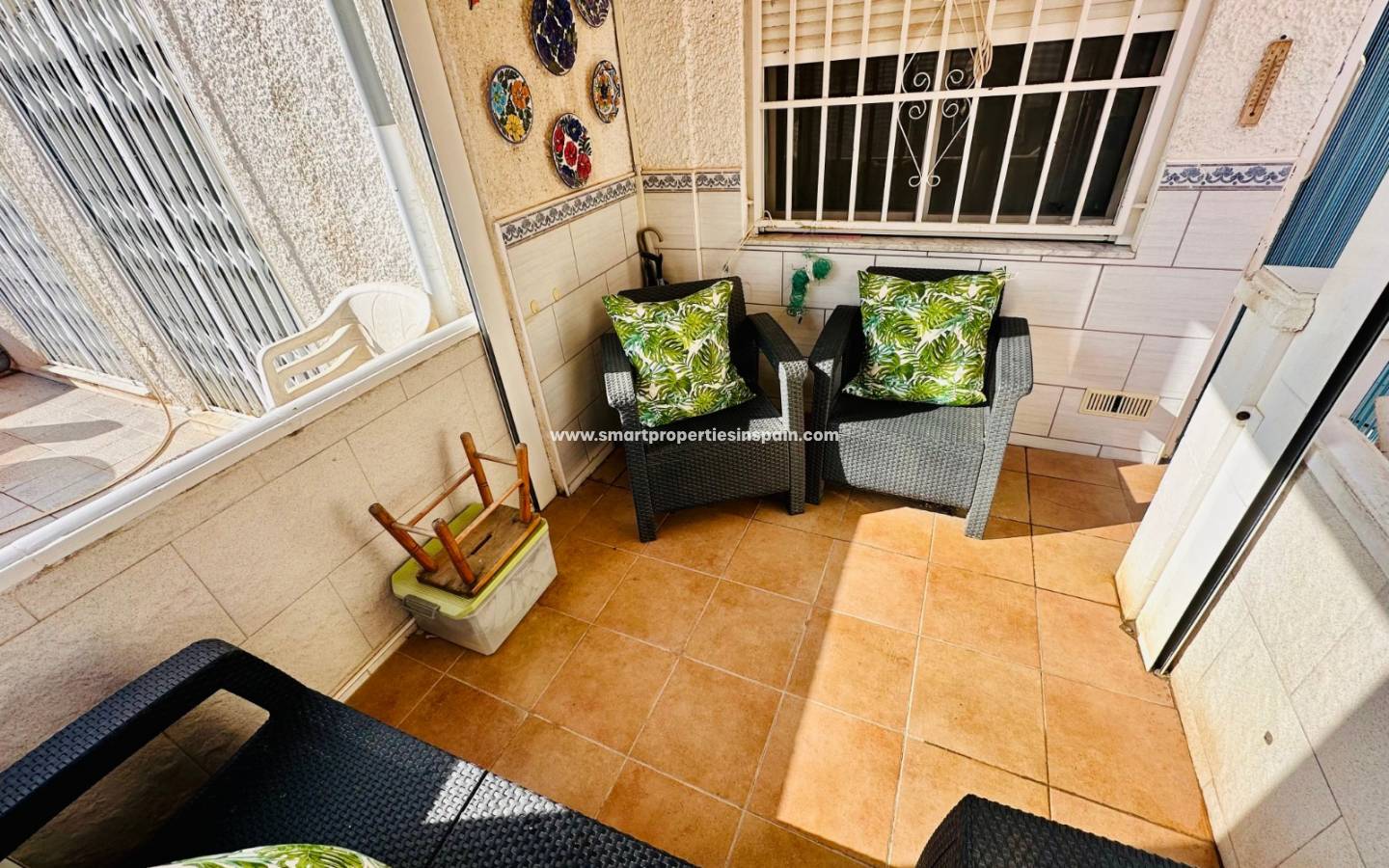 Deze woning biedt 69 m² woonruimte , inclusief een aparte keuken , een ruime en lichte woon-/eetkamer die direct uitkomt op een aangenaam terras aan de voorzijde , ideaal om het hele jaar door van het mooie weer te genieten. Er is tevens een complete badkamer en een zeer ruime slaapkamer met toegang tot een privéterras aan de achterzijde , perfect om te ontspannen.