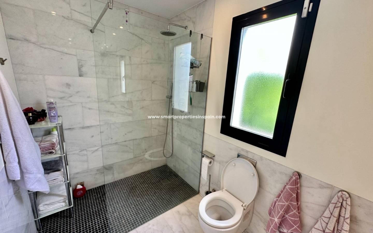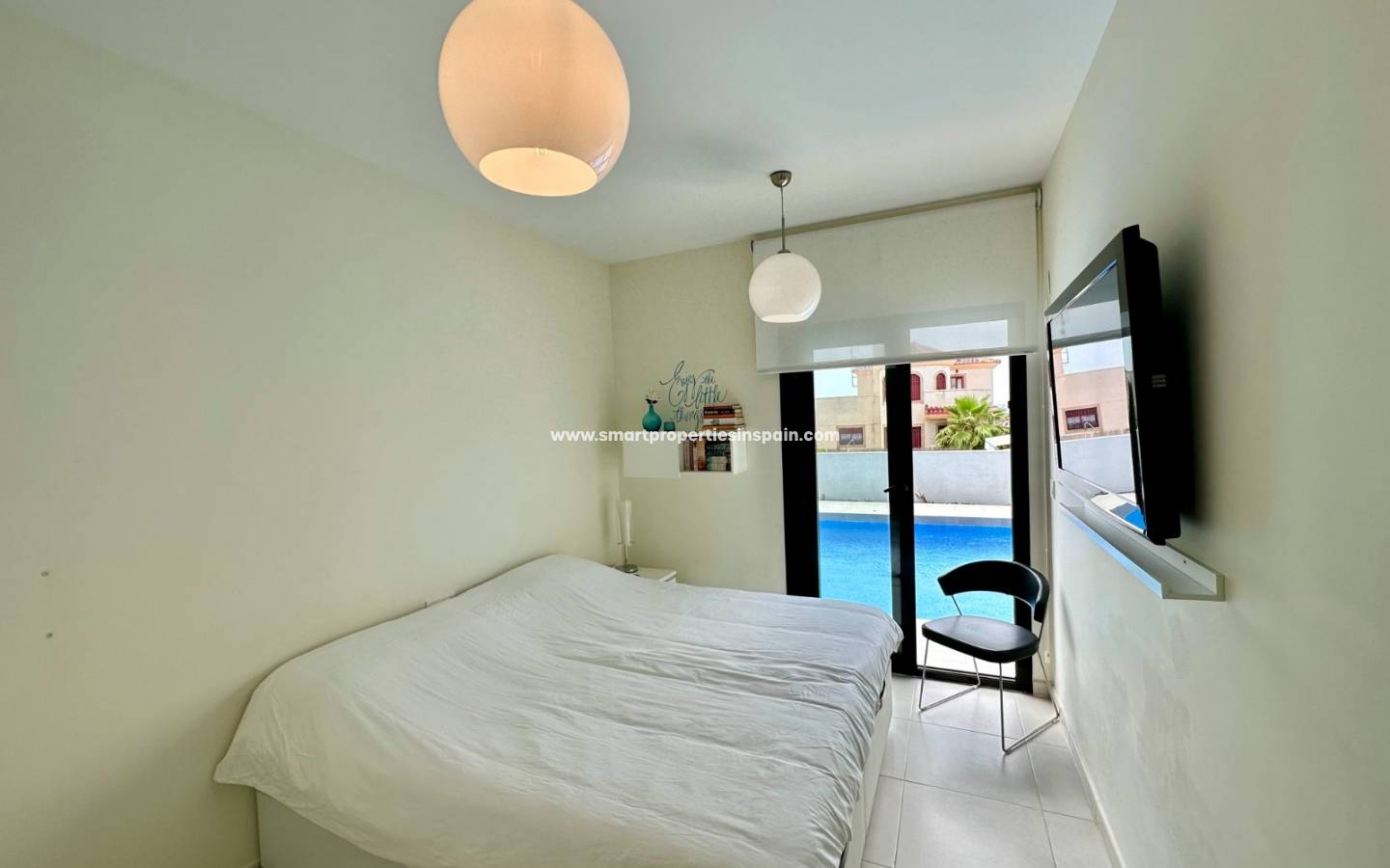 This beautiful villa has 4 very good size bedrooms all have a large window that gives access to the garden and pool. The master bedroom has an en-suite bathroom with double sinks and a good size walk-in closet. Three bathrooms all with Italian shower and window.