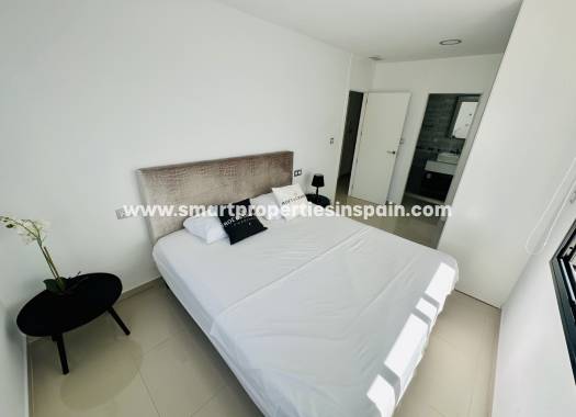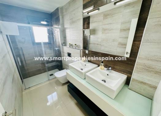 First floor : 2 double bedrooms , 1 full bathroom and access to a solarium terrace with panoramic views , ideal for relaxing in the sun of the Costa Blanca.